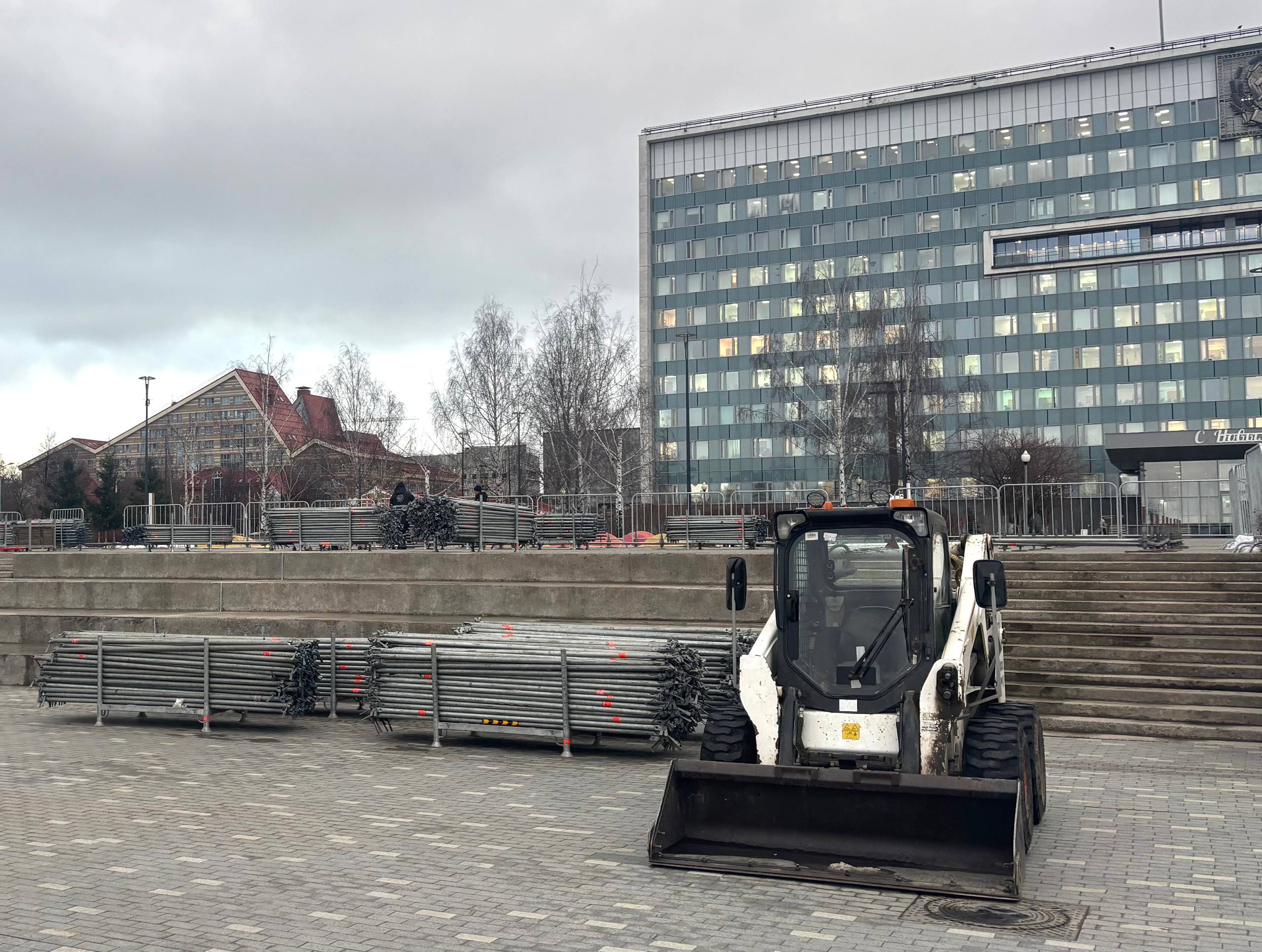 На пермской эспланаде приступили к установке главной новогодней елки. Сейчас идет сборка её основания и ограждений.