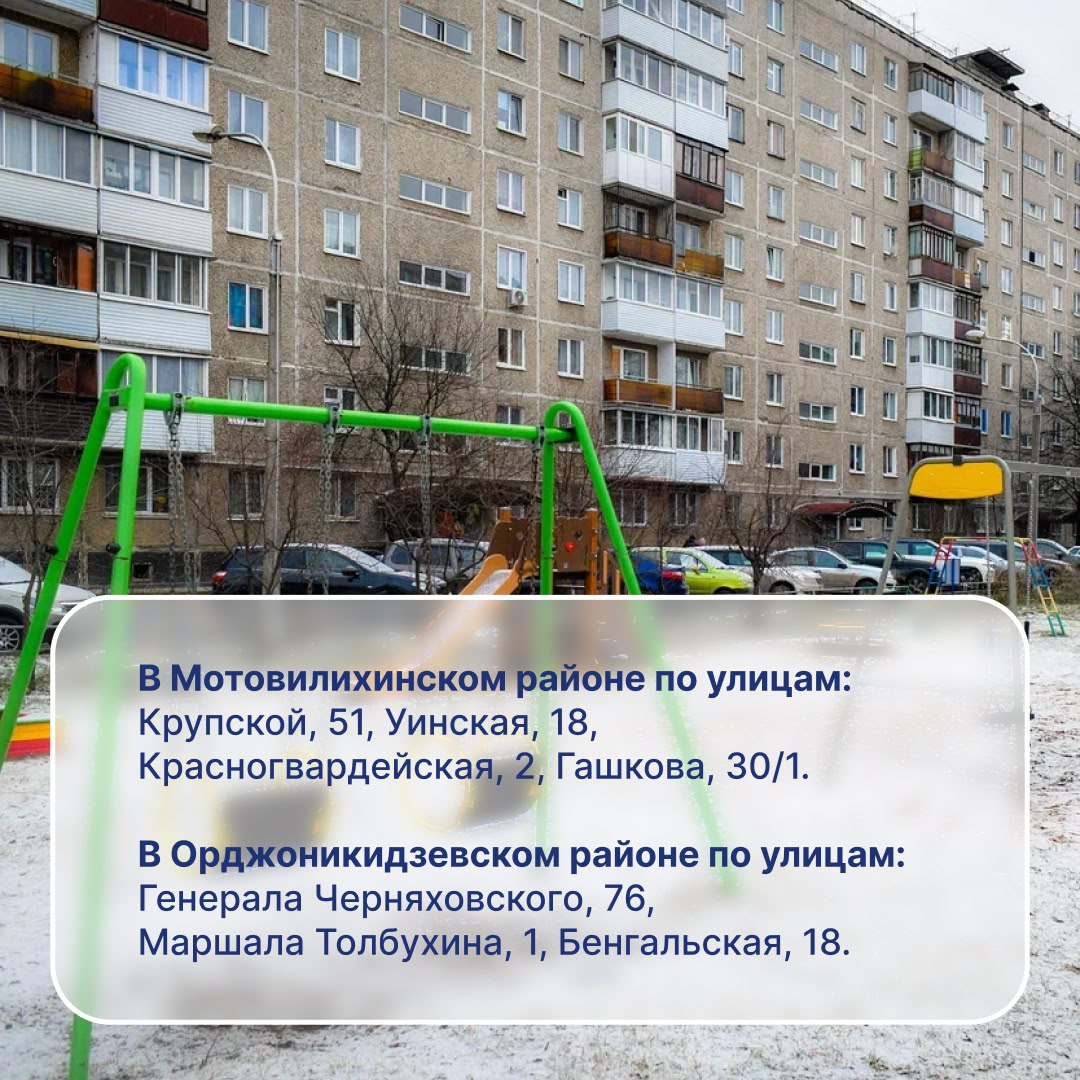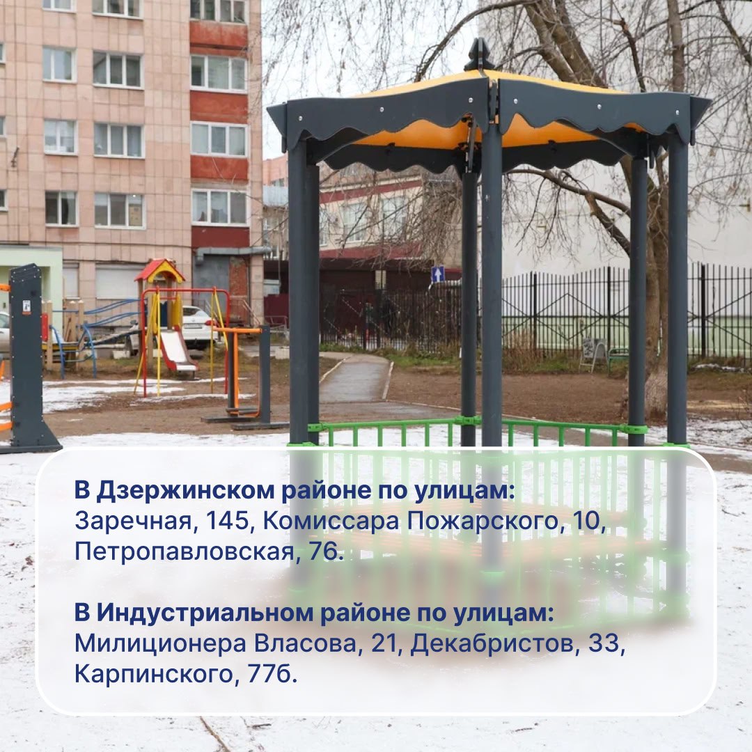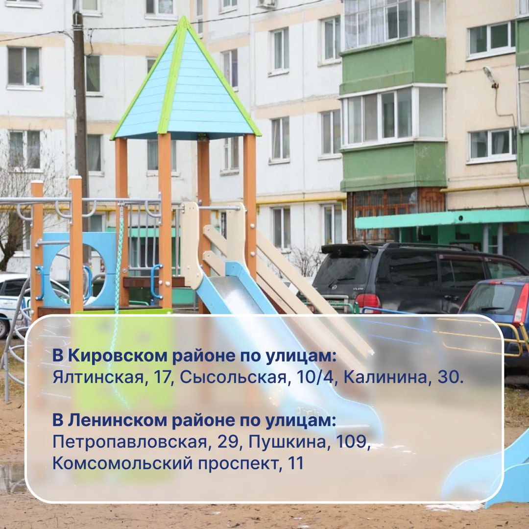 В карточках указаны адреса 24 новых площадок. Ежегодно мы благоустраиваем дворы, ставим площадки, в следующем году продолжим благоустройство дворов и мест отдыха по всему городу.