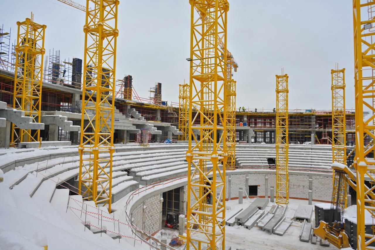Параллельно ведется строительство каркаса на 2–4 этажах, почти готов первый этаж и кольцевая опорная балка будущего купола с пролетом 96 метров, рассказал губернатор Прикамья Дмитрий Махонин.