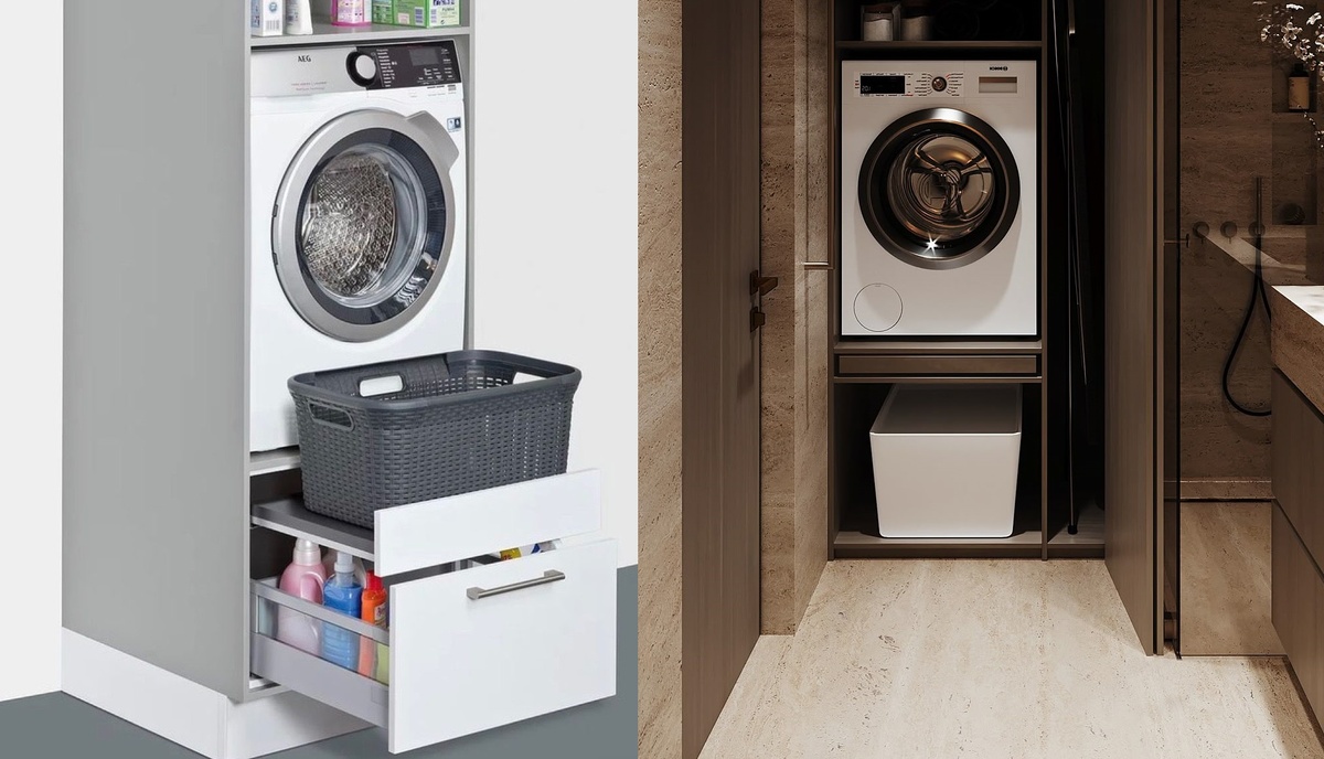 Забудьте о постоянных наклонах, когда дело касается стирки. Использование подставки для стиральной машины позволяет упростить процесс — дверца будет на уровне груди, а бельё всегда под рукой. Под ней можно разместить выкатную корзину для грязного белья или лоток для моющих средств, что значительно экономит место. Это маленькое изменение значительно сэкономит время и усилия.