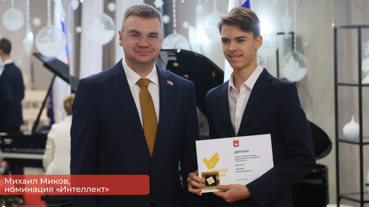 На этой неделе вручил награды победителям премии «Золотой резерв». Всего её получили 60 пермских школьников и выпускников — за успехи в науке, творчестве, общественной деятельности и учёбе.
