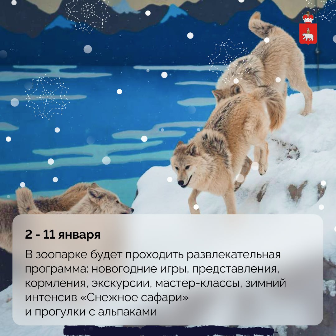 Посетителей ждут театрализованные представления, мастер-классы, прогулки с альпака, показы новогодних фильмов и мультфильмов, квесты, экскурсии и кормления животных.