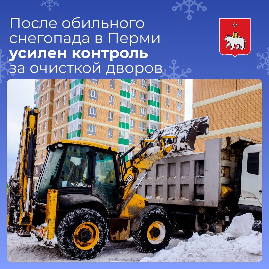 После обильного снегопада в Перми усилен контроль за очисткой дворов