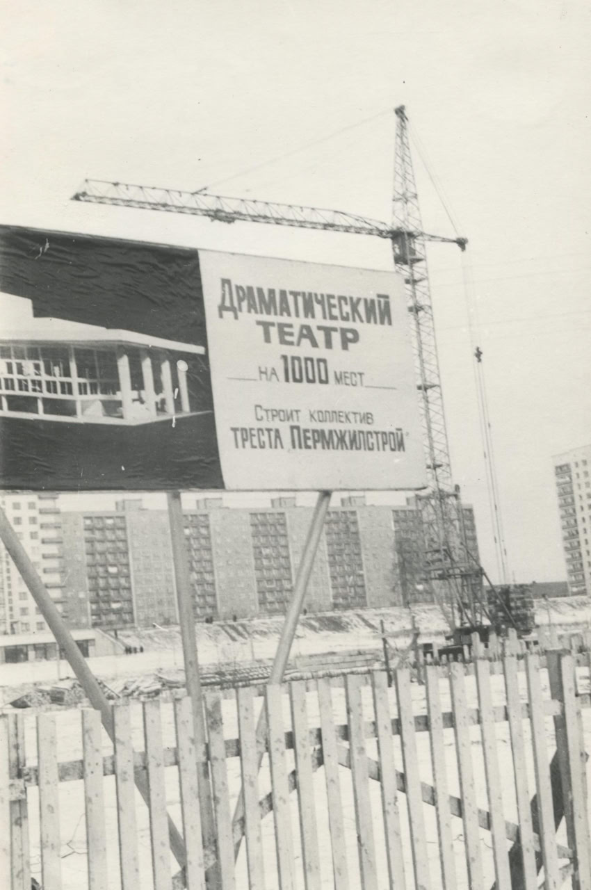 Площадка под строительство здания академического театра драмы (ныне Пермский академический театр-театр). Вид с подъёмным краном.