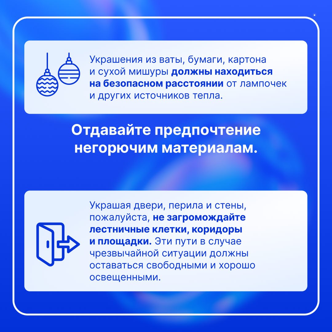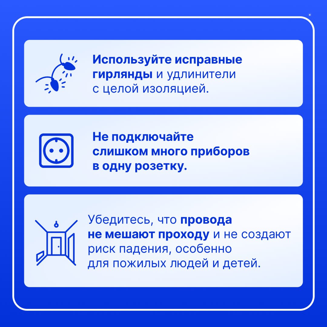 Также управляющие компании и ТСЖ могут оказать содействие жителям в безопасном подключении гирлянд и проконтролировать соблюдение норм пожарной безопасности в местах общего пользования.
