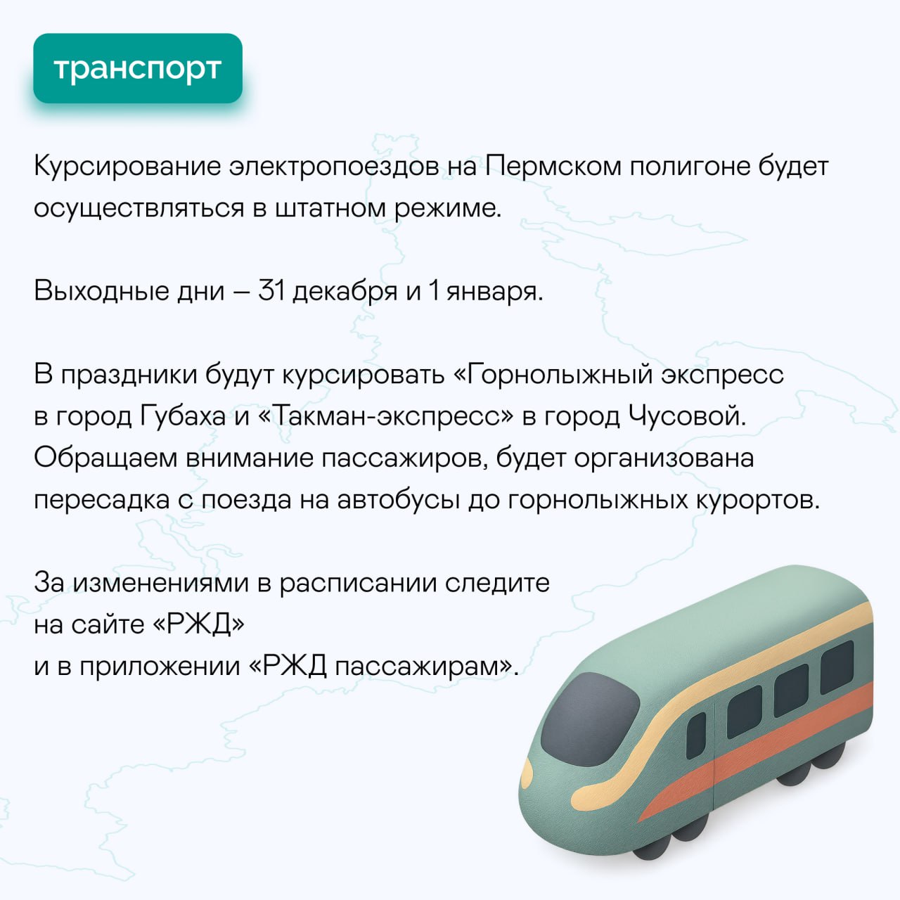С расписанием движения общественного транспорта на муниципальных маршрутах и межмуниципальных маршрутах в новогодние праздники можно ознакомиться на официальных сайтах: