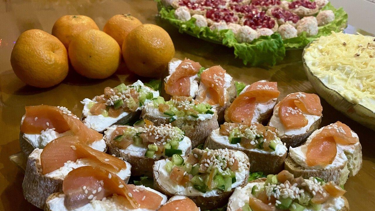 Что на столах? Несмотря на гастрономические эксперименты, новогодняя классика непобедима: оливье, селёдка под шубой, холодец, курица с картошкой.