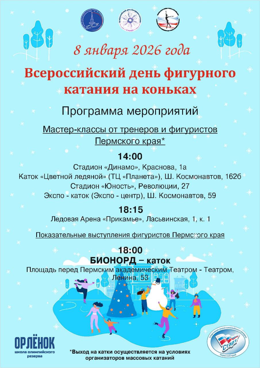 8 января на городских катках Перми тренеры и спортсмены проведут мастер-классы по катанию на коньках для всех желающих