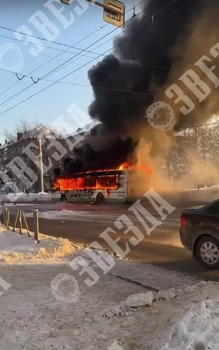 Пассажирский автобус сгорел в Березниках во время движения