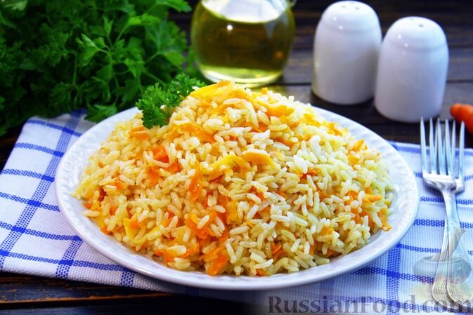 - Запеченный рис с морковью. Это простое, но очень вкусное блюдо позволяет раскрыть все грани риса. Он запекается в духовке с морковью, луком, чесноком и щепоткой сливочного масла — сочетание, которое сделает рис рассыпчатым и ароматным.