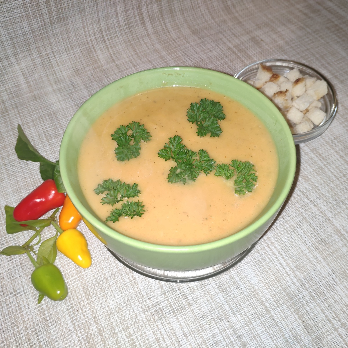 Кабачки продолжают радовать нас своим присутствием в рационе. В этом проекте предлагается создать не только полезный и вкусный, но и ароматный крем-суп, который придаст итальянский колорит вашему столу. Идеально подходит для подачи с хрустящими сухариками и свежей петрушкой.