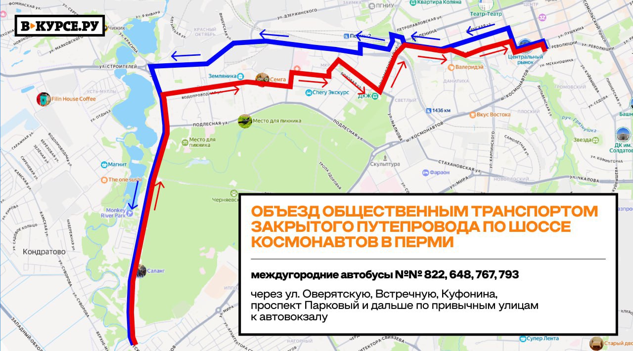 С 19 января изменилась схема движения сразу 11 межмуниципальных маршрутов в объезд закрытого участка шоссе Космонавтов