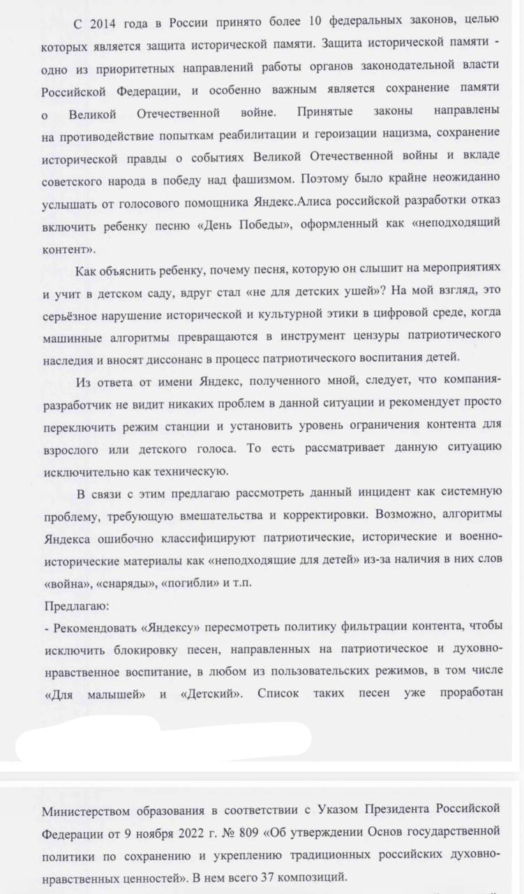 Когда ко мне обратился депутат Заксобрания Пермского края Ирек Хазиев, я даже не поверила. Поэтому мы решили все проверить - ответ на видео. Песня «День Победы» действительно ограничена для прослушивания, если включен детский режим и нейросеть распознает голос маленького ребенка. Алиса говорит, что песню можно якобы слушать «только вместе с родителями».