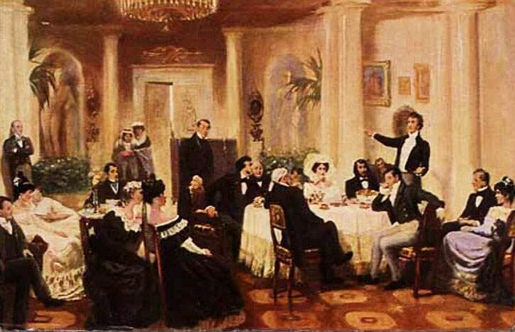 - Первая дама за столом располагается справа от хозяина, вторая — слева. При увеличении количества гостей до восемнадцати необходимо делить обязанности между слугами, чтобы обеспечить качественное обслуживание.