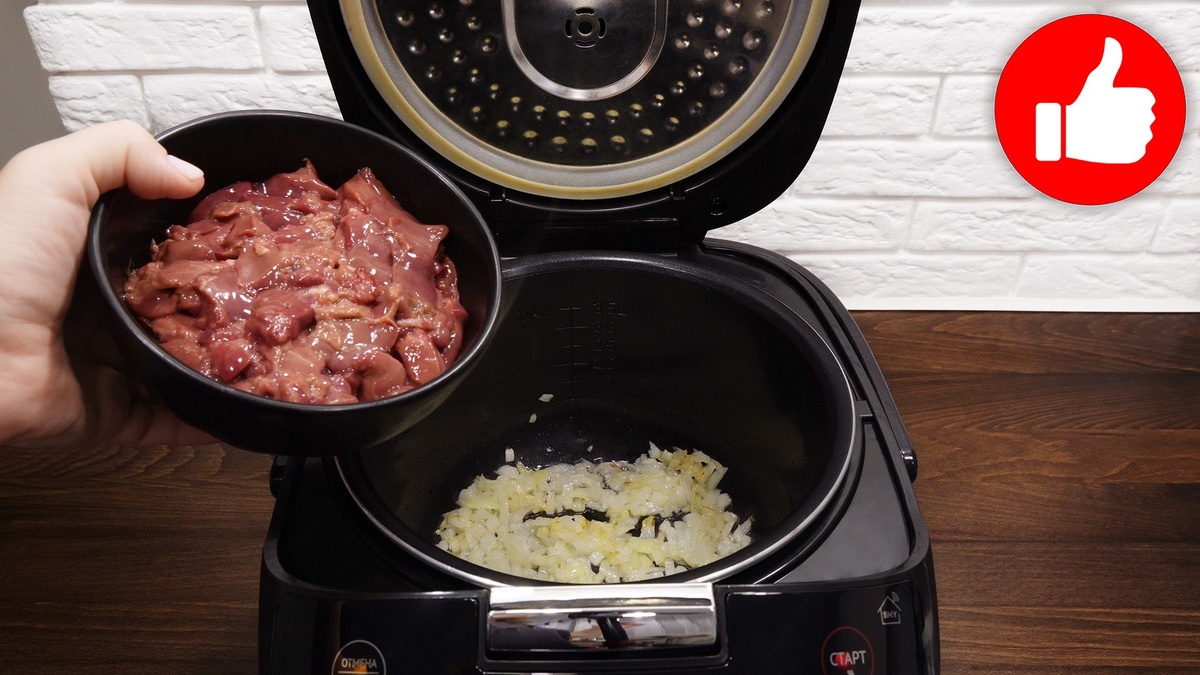 В мультиварке нужно разогреть подсолнечное масло, выбрав режим «Жарка». Обжарьте нарезанный лук в течение трех минут, затем добавьте куриную печень, муку, аджику и специи. Готовьте эту смесь еще три минуты. Далее добавьте натертые огурцы и нарезанные помидоры. Установите режим «Мультиповар 110°C» на десять минут или выберите «Тушение» на пятнадцать минут. Блюдо готово к подаче!
