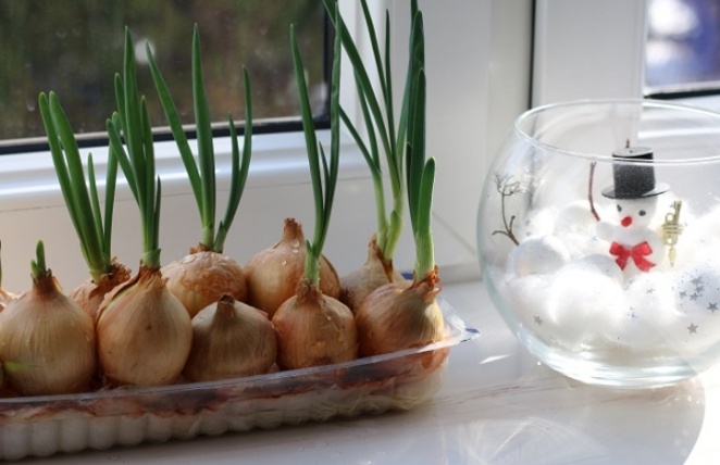 Оптимальная температура для пророщенного лука составляет около +10…+15 °C в первые дни. В следующих этапах проращивания она может увеличиваться до +18…+22 °C. Если же обеспечить луку прохладу не удается, стоит чаще открывать окна для проветривания.