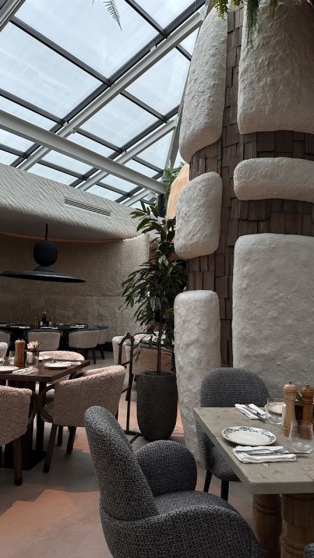 Первое, что бросается в глаза, — это невероятный интерьер. Потолок украшает диковинный дракон, обвивающийся всеми зелеными оттенками и цветами. Он создает атмосферу сказки, от которой невозможно оторвать взгляд. Зайдя в туалет, гости тоже попадают в настоящий арт-объект: там расположены раковины, напоминающие раскрытые цветы, из которых капают воды. Каждый мелкий аспект продуман до мельчайших деталей, что делает место поистине уникальным.