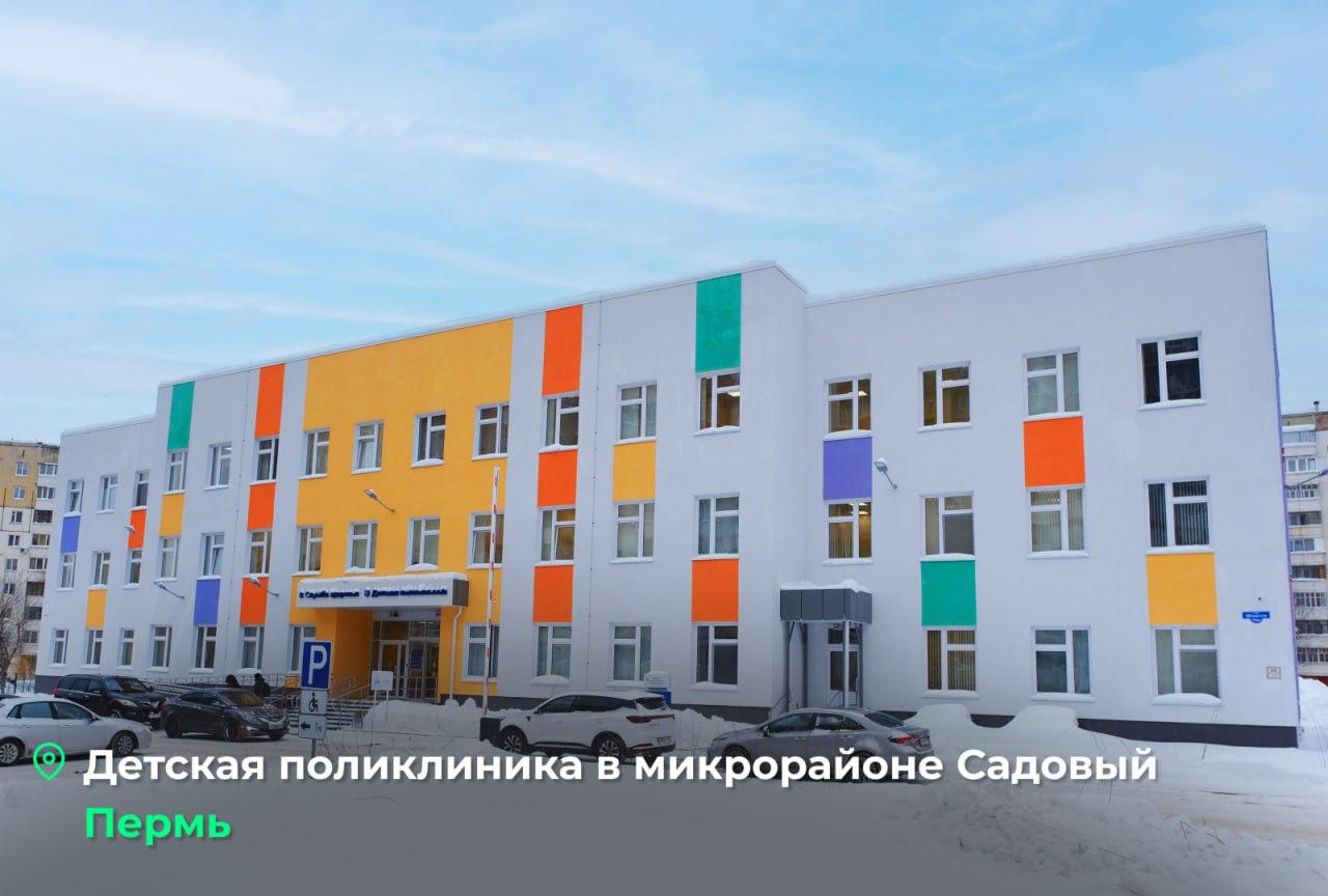 Вторым открывшимся объектом стала детская поликлиника на улице Шмидта, 56а в Перми. Учреждение рассчитано на прием до 350 детей в смену и оснащено кабинетами педиатров, профильных специалистов, неотложной помощи, иммунопрофилактики, рентгена и медицинской реабилитации.