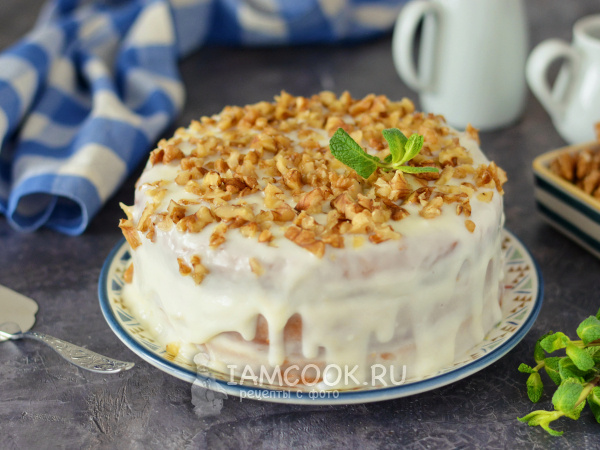 Ингредиенты выглядят как знакомая полка на кухне: яйца, мука, сахар, щепотка соли, разрыхлитель. Бисквит плывёт в духе легкости, а крем из сметаны с сахаром добавляет насыщенности. Украшают изделие грецкие орехи, а смазывать форму облегчит небольшое масло и мука. Такой торт прост в исполнении и не требует особых навыков.