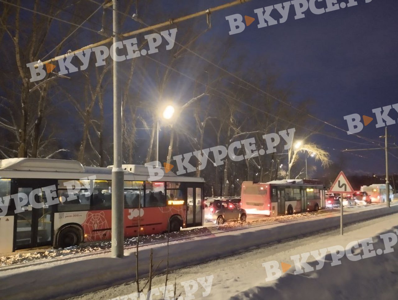 Очевидцы сообщают, что люди выходят автобусов и идут пешком. Транспорт задерживается по расписанию более 50 минут, сообщает дептранс.