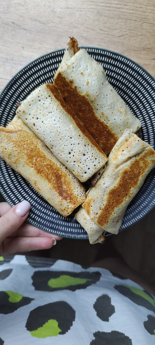 Завтрак может начинаться с аппетитных блинов, приготовленных с ветчиной, творогом и нежным сыром. Выбор низкокалорийных ингредиентов позволяет насытиться без ущерба для фигуры, и, в итоге, можно съесть больше объема, что значительно повышает удовольствие от трапезы.