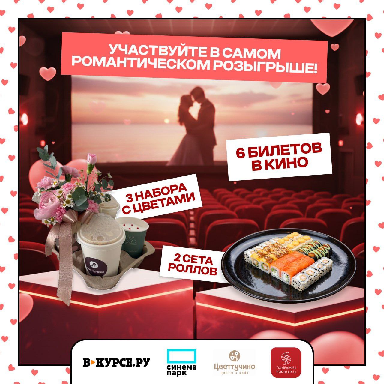 Отличный шанс выиграть сет роллов, подарочные наборы и билеты в кино! Будет целых 3 победителя!