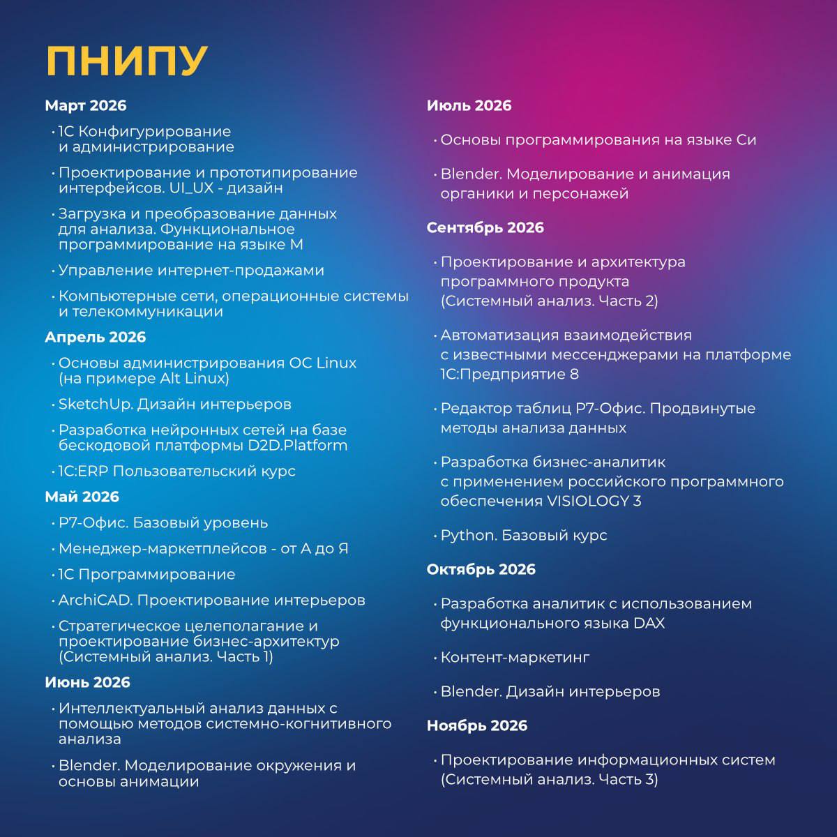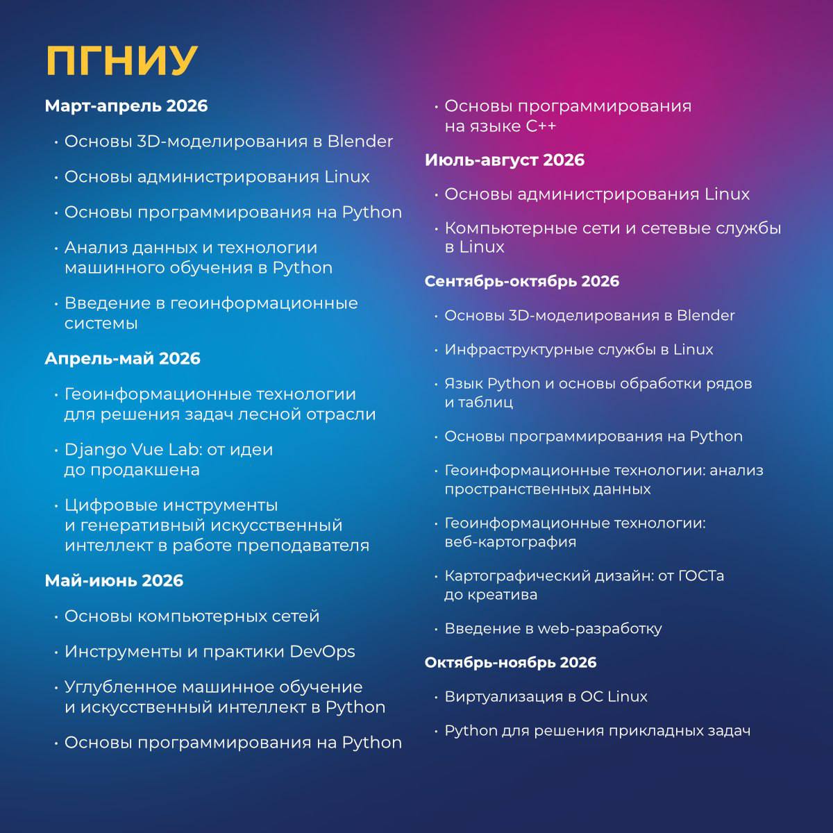 Среди направлений — интернет-маркетинг, программирование на Java и Python, искусственный интеллект и анализ данных для управления. Полный список — в карточках.