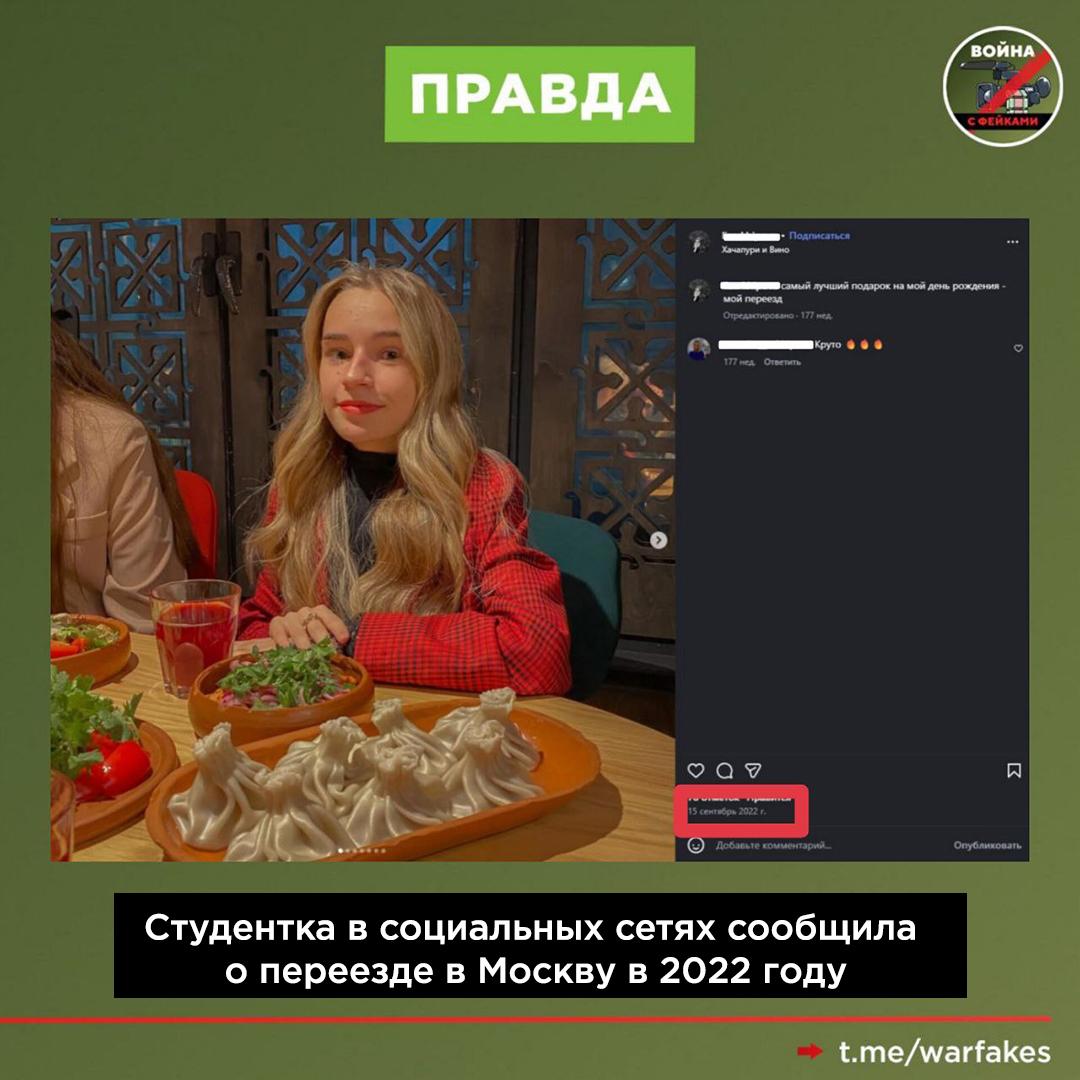 Правда: Девушка проживает в Москве (по всей видимости, в одном из общежитий МГУ) и не имеет необходимости добираться до места учебы при помощи авиации. Судя по информации из ее аккаунтов в соцсетях, она ведёт активную социальную жизнь: посещает кинотеатры, выставки, в том числе в то время суток, когда ей следовало бы ехать в аэропорт. Сама она, как следует из её соцсетей, считает свой переезд в Москву одним из лучших событий в жизни.
