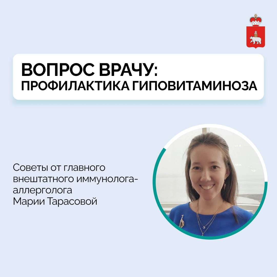 Главный внештатный иммунолог-аллерголог Мария Тарасова рассказала о том, как правильно подготовиться к весне и избежать гиповитаминоза.Подробнее — в карточках.#Врачи_Пермскийкрай