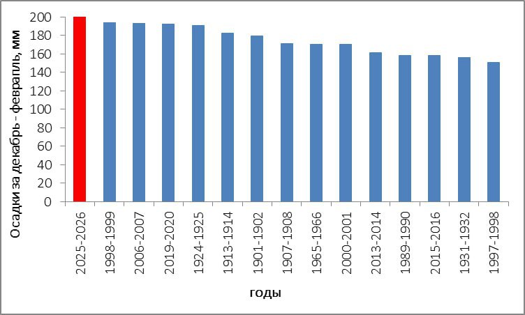 С 1 декабря на городской метеостанции выпало 200 мм осадков, однако это еще далеко не окончательное значение. К 28 февраля может нападать до 220 мм.