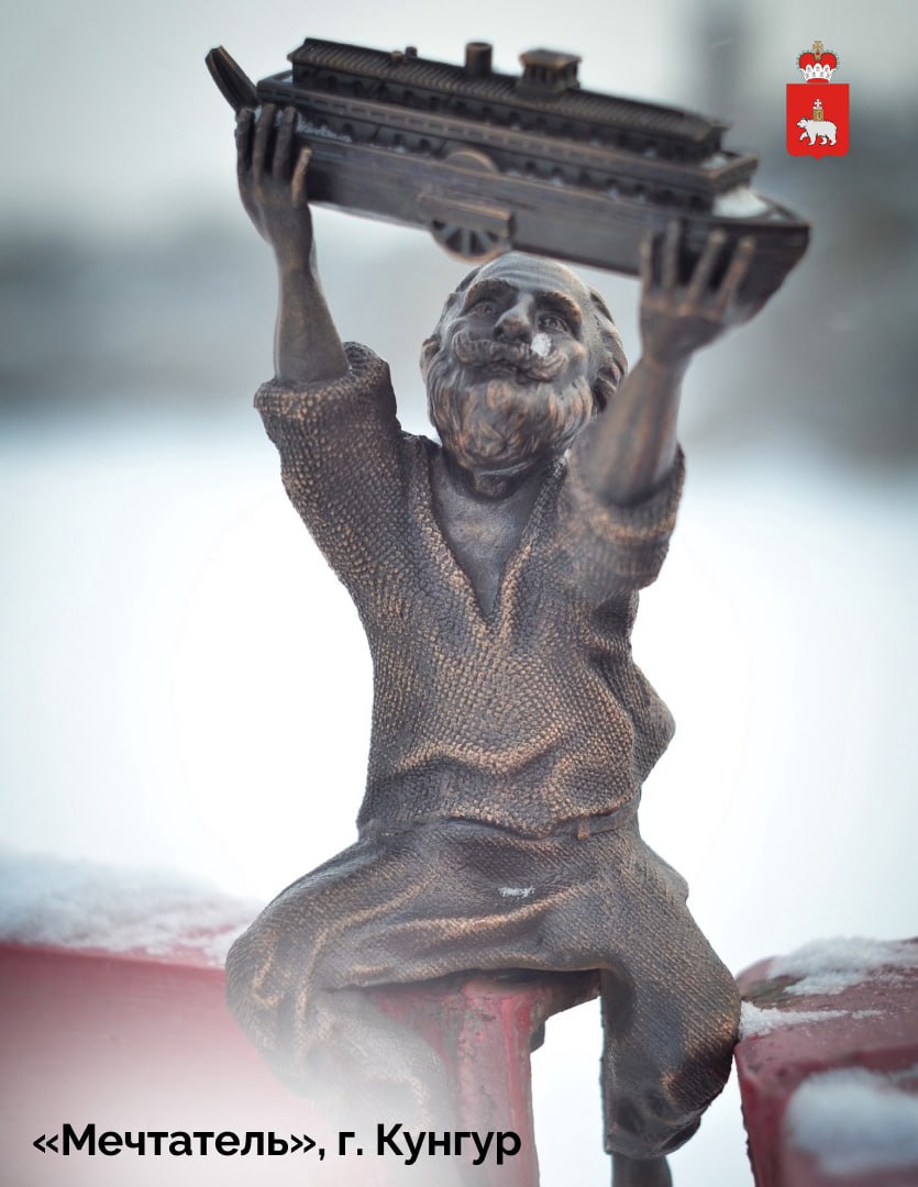 В купеческом Кунгуре установили бронзовые фигурки ремесленников — камнерезов, кузнецов, гончаров, пряничников. Есть даже «мечтатель» — образ человека, который меняет мир. Скульптуры станут частью аудиогида и помогут туристам по-новому открыть город.