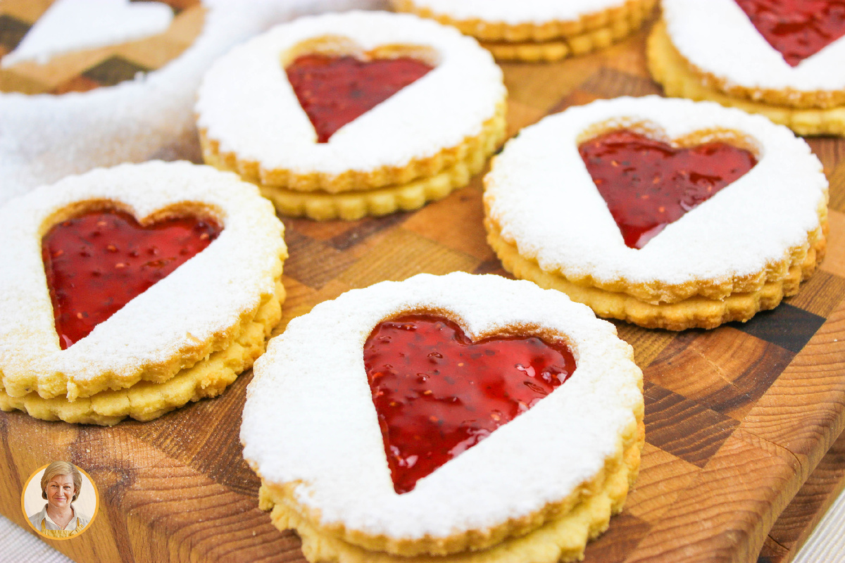 После завершения выпечки, окунитесь в атмосферу торжества: на целые печенья набросьте немного джема, а печенья с отверстием обсыпьте сахарной пудрой. Соберите вместе печенья с джемом и печенья с дырочкой и наслаждайтесь этим замечательным десертом, который порадует как взрослых, так и детей.