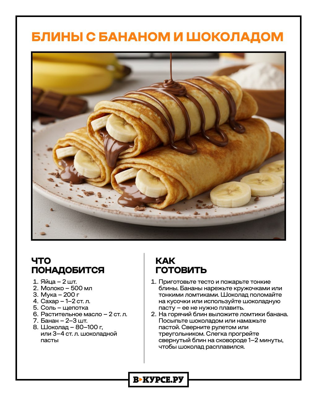 Задача всем нашим подписчикам на сегодняшний вечер — сохранить рецепты и приготовить по ним сладкие или соленые блинчики