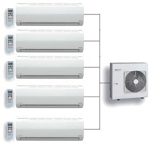 Мультисплит-система, в зависимости от модели, может подключать от двух до шести внутренних блоков к одному наружному. Эта особенность позволяет индивидуально настраивать температурный режим в каждой комнате. Такой вариант особенно актуален в случаях, когда монтаж нескольких наружных блоков представляет сложности.