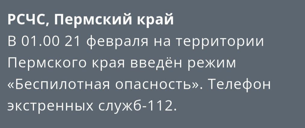 В Пермском крае введены режимы «Беспилотная опасность» и «Ковер» радиусом 100 километров