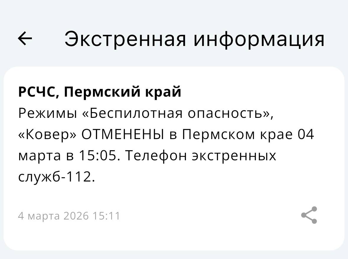 В Пермском крае сняты режимы «Беспилотная опасность» и «Ковер»