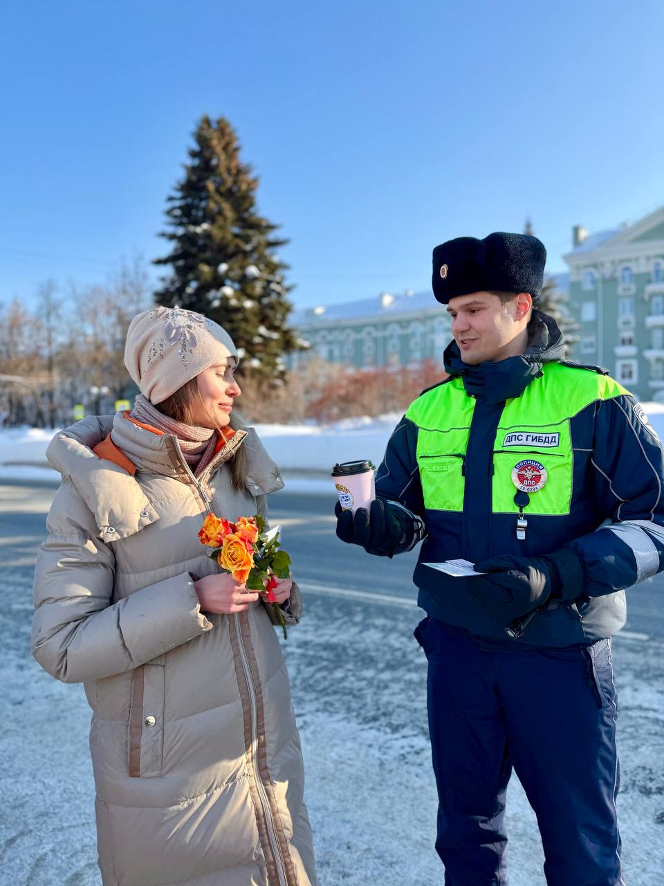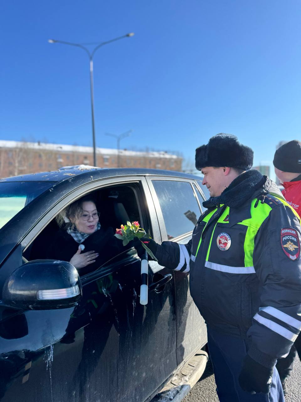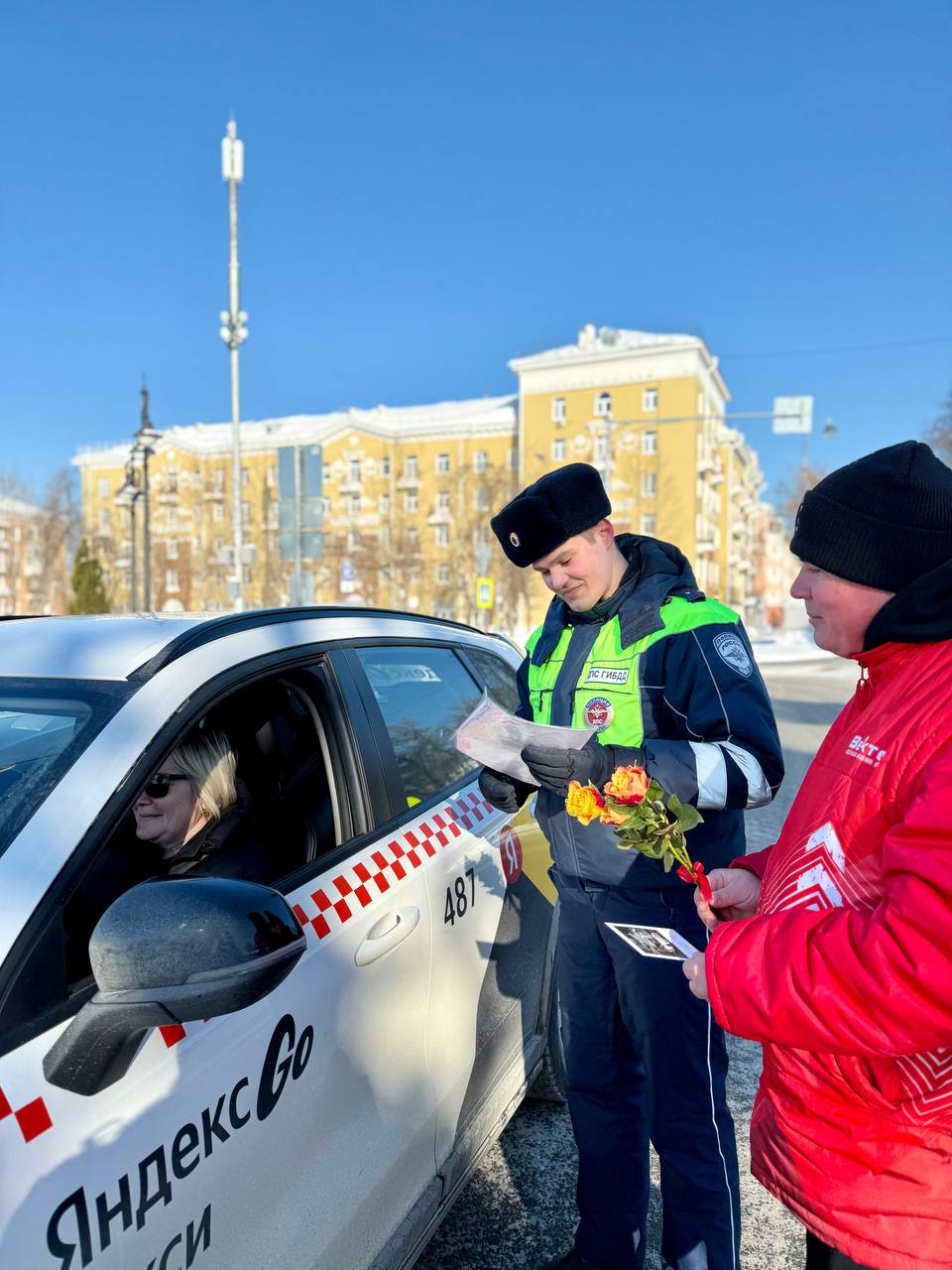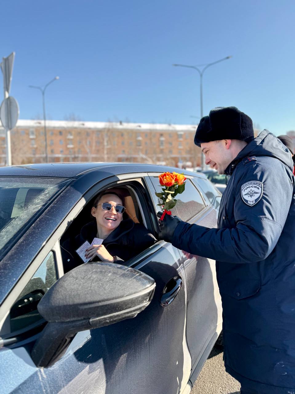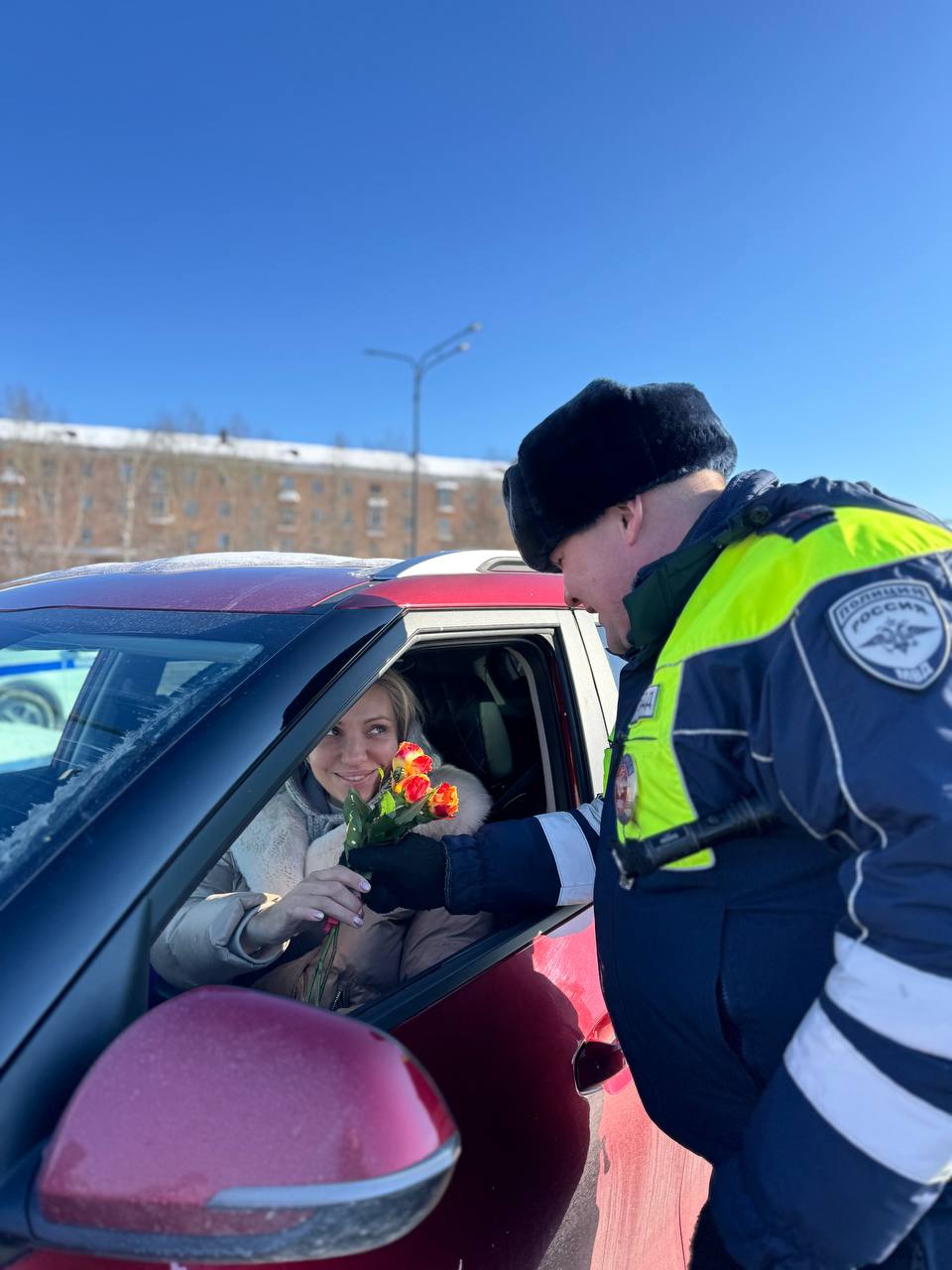 В преддверии первого весеннего праздника сотрудники Госавтоинспекции поздравили автолюбительниц с наступающим Международным женским днём