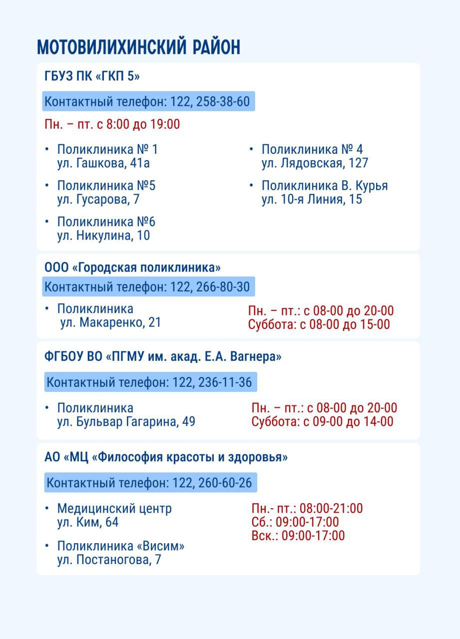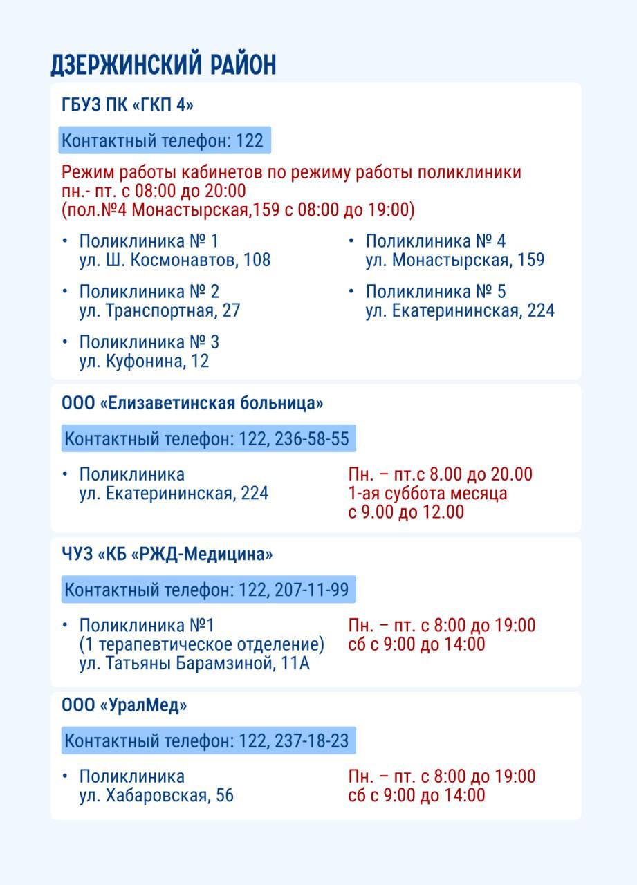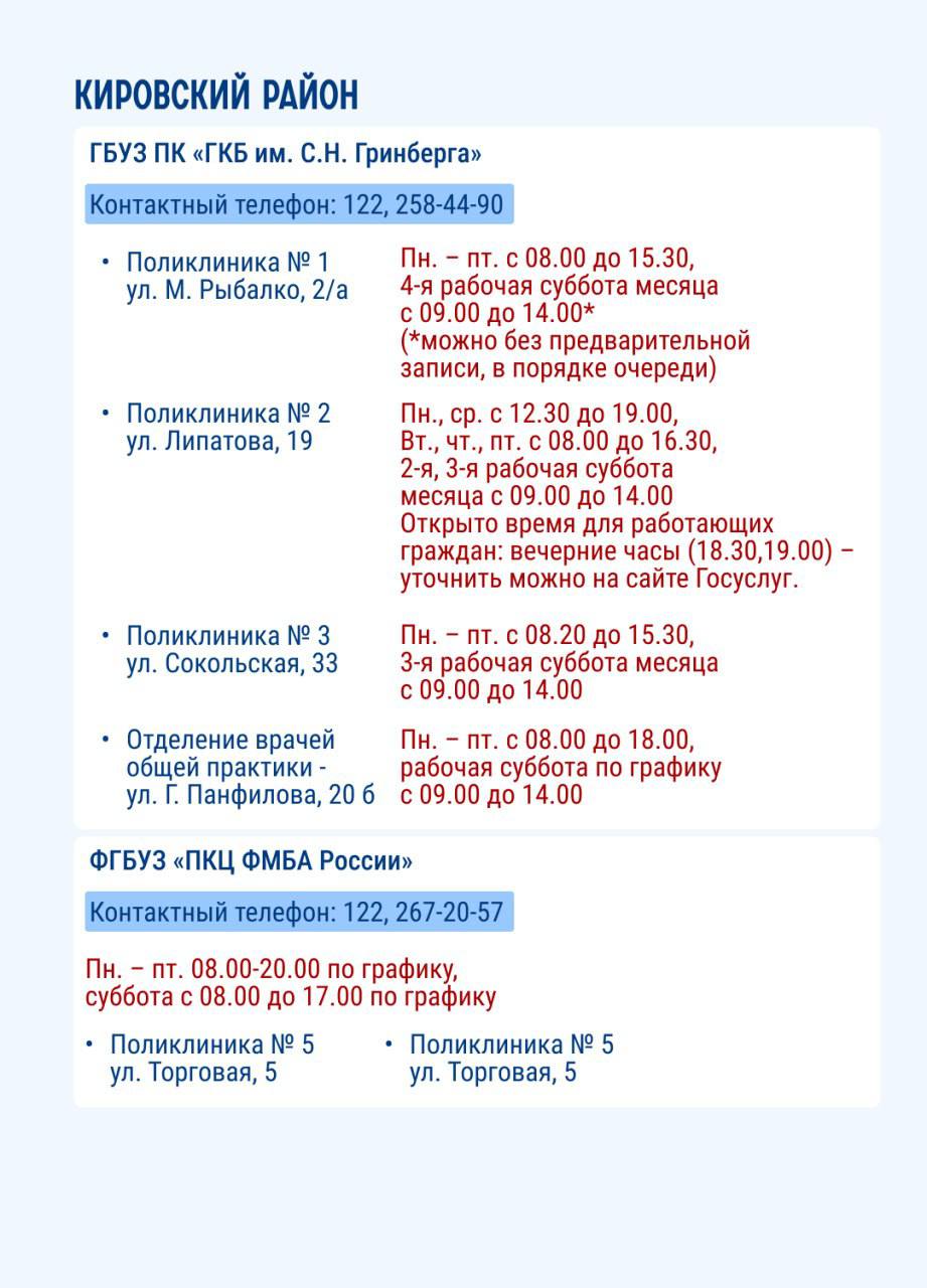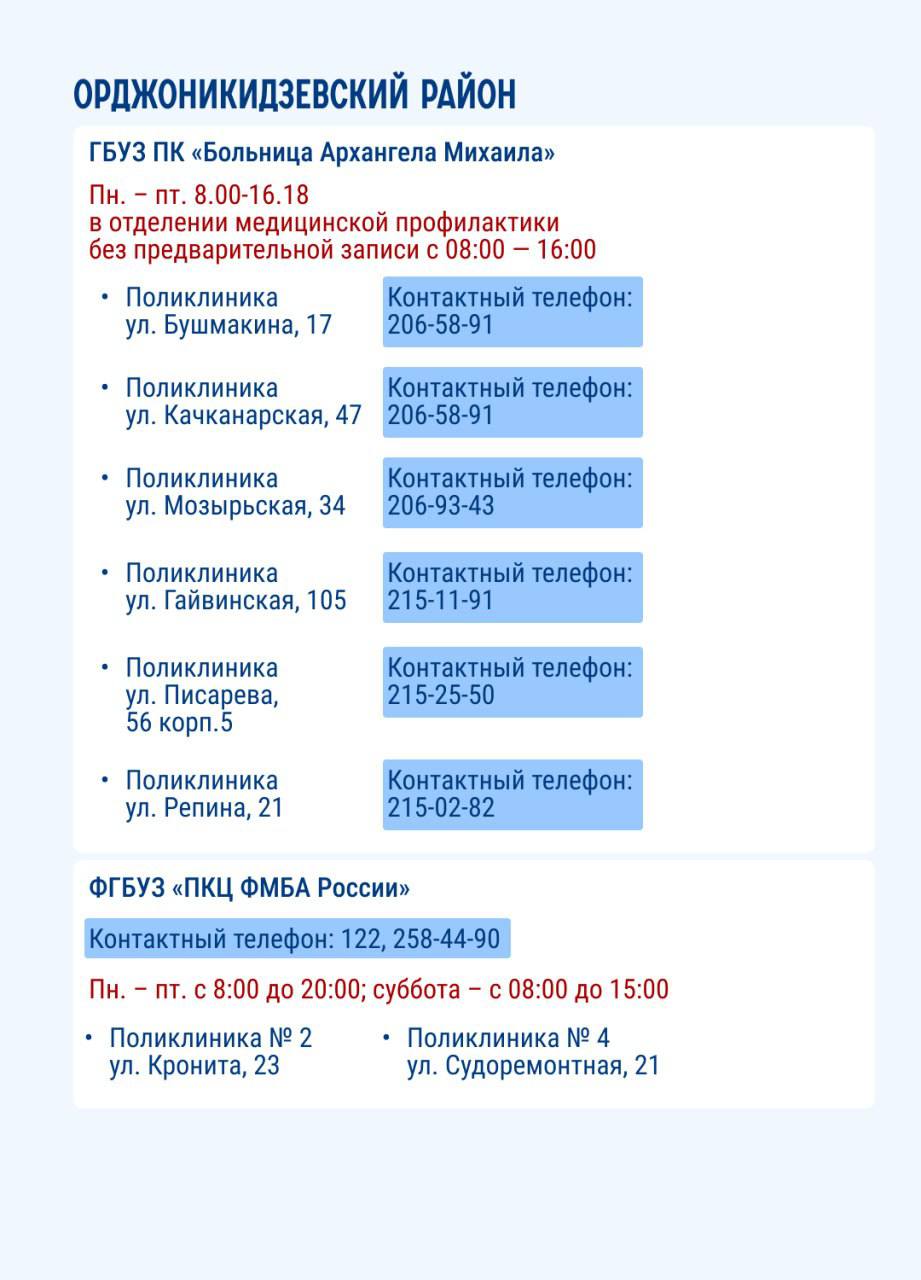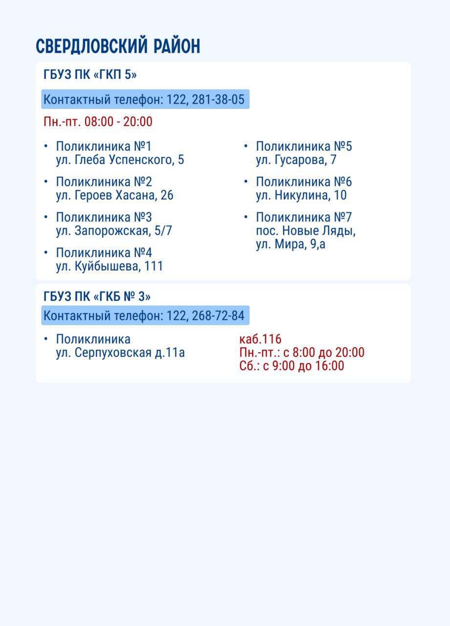 На карточках представлены места в Перми, где можно пройти диспансеризацию.