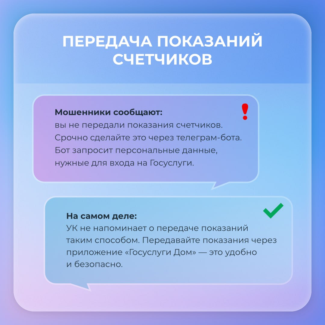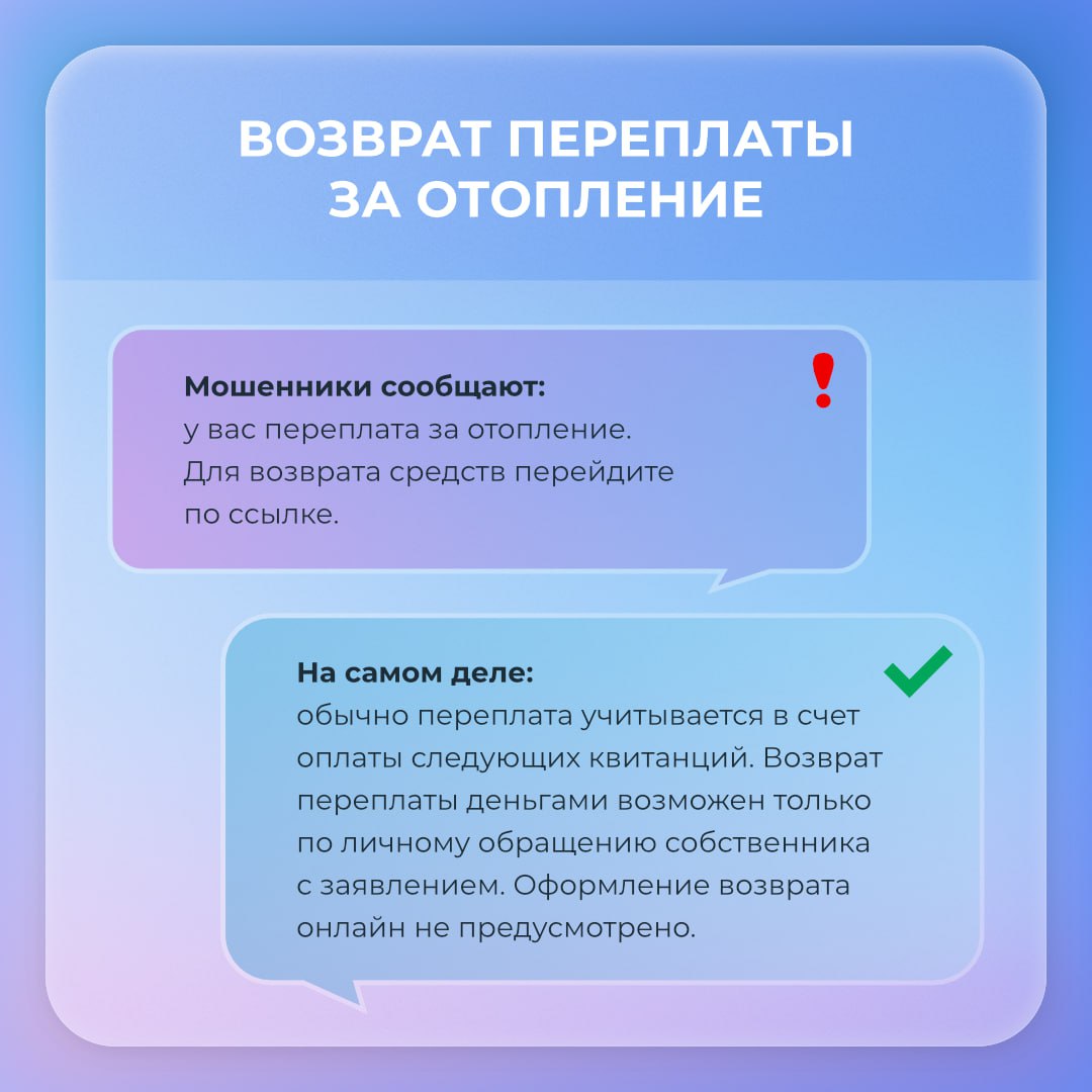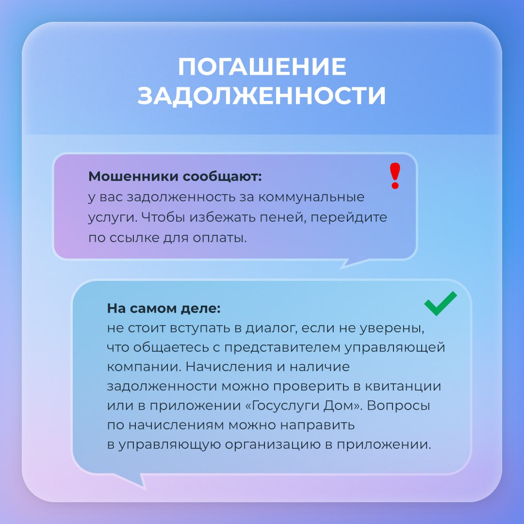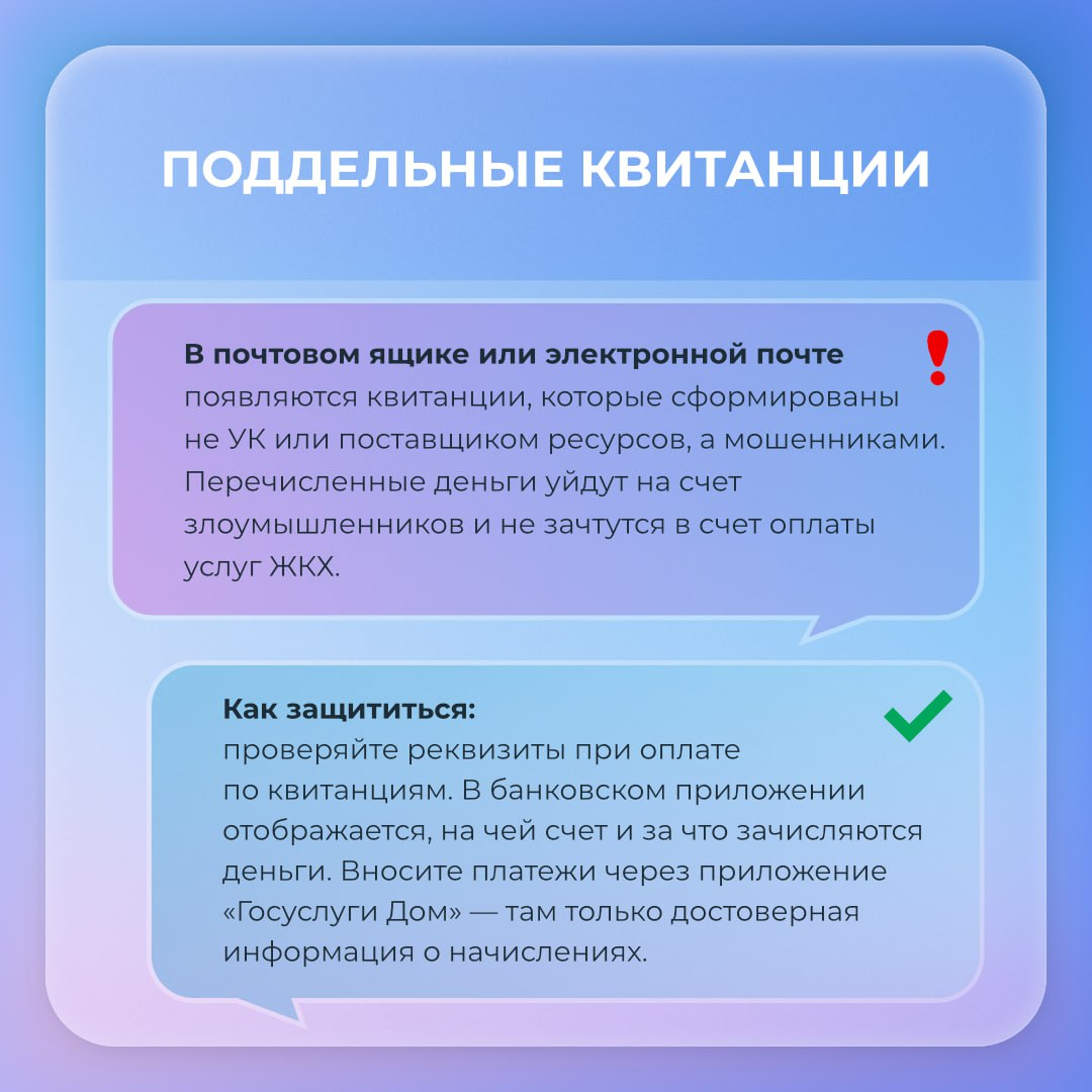 В карточках — схемы мошенников в ЖКХ. Отправьте пост в чат дома.