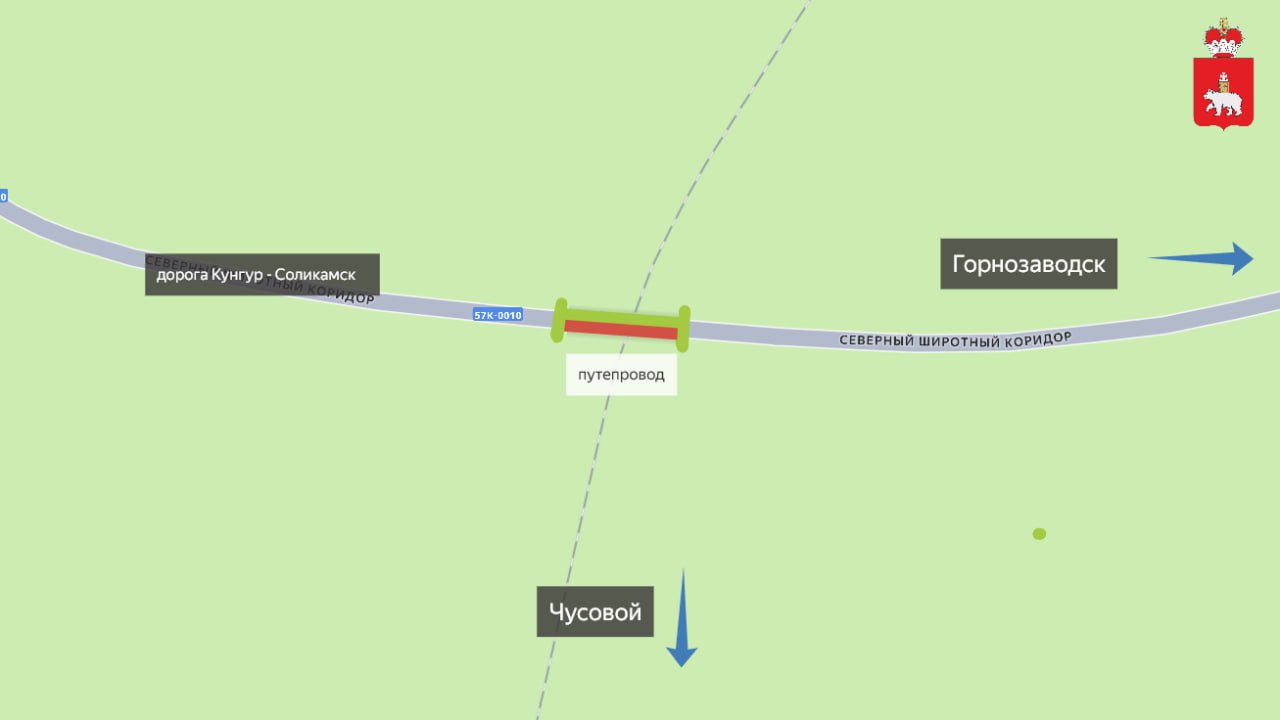 Ремонт будет проходить по полосам. С 13 марта для движения будет закрыта правая полоса, если ехать в сторону Горнозаводска. Регулировать проезд будет светофор.