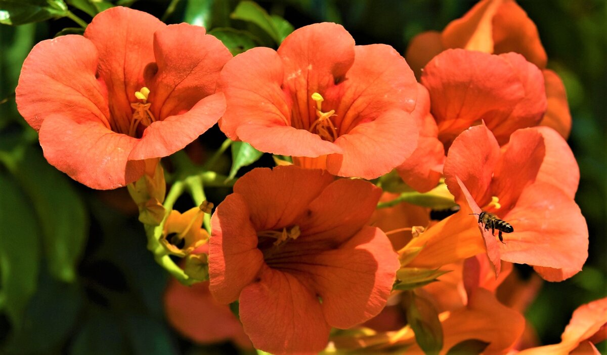 Корневая система кампсиса настолько мощная, что даже при наличии ограничений она может проникать вглубь, разрушая фундаменты и другие конструкции. Чтобы предотвратить это, следует установить металлические ограждения на глубину не менее одного метра. Кроме того, кампсис имеет яркие цветы — от красного до желтого, которые образуют пышные соцветия и привлекают множество опылителей, несмотря на отсутствие явного аромата.