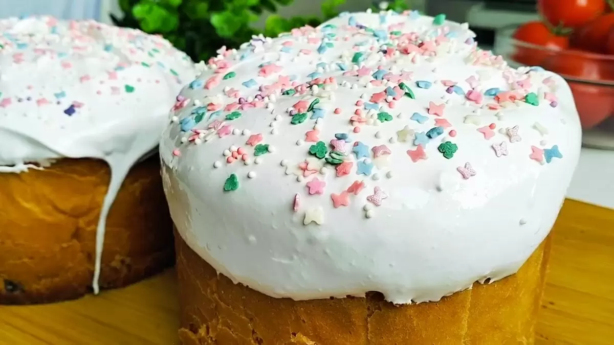 Когда куличи остынут, обмажьте их глазурью и посыпьте декором. Оставьте на столе, чтобы глазурь засохла и затвердела. Приятного аппетита!