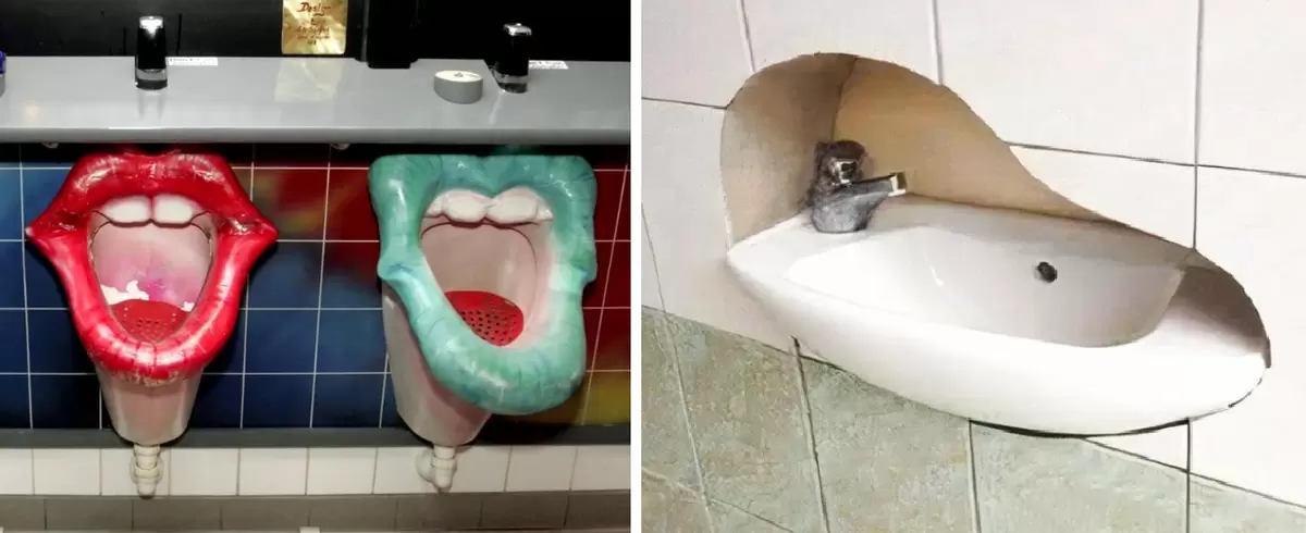 Общественные туалеты сами по себе нередко вызывают ироничные комментарии. Например, писсуары в виде открытого рта – это уже точно перебор для любого заведения. Такой стиль уже состоялся в культурной памяти, а теперь вызывает только вопросы о целесообразности.