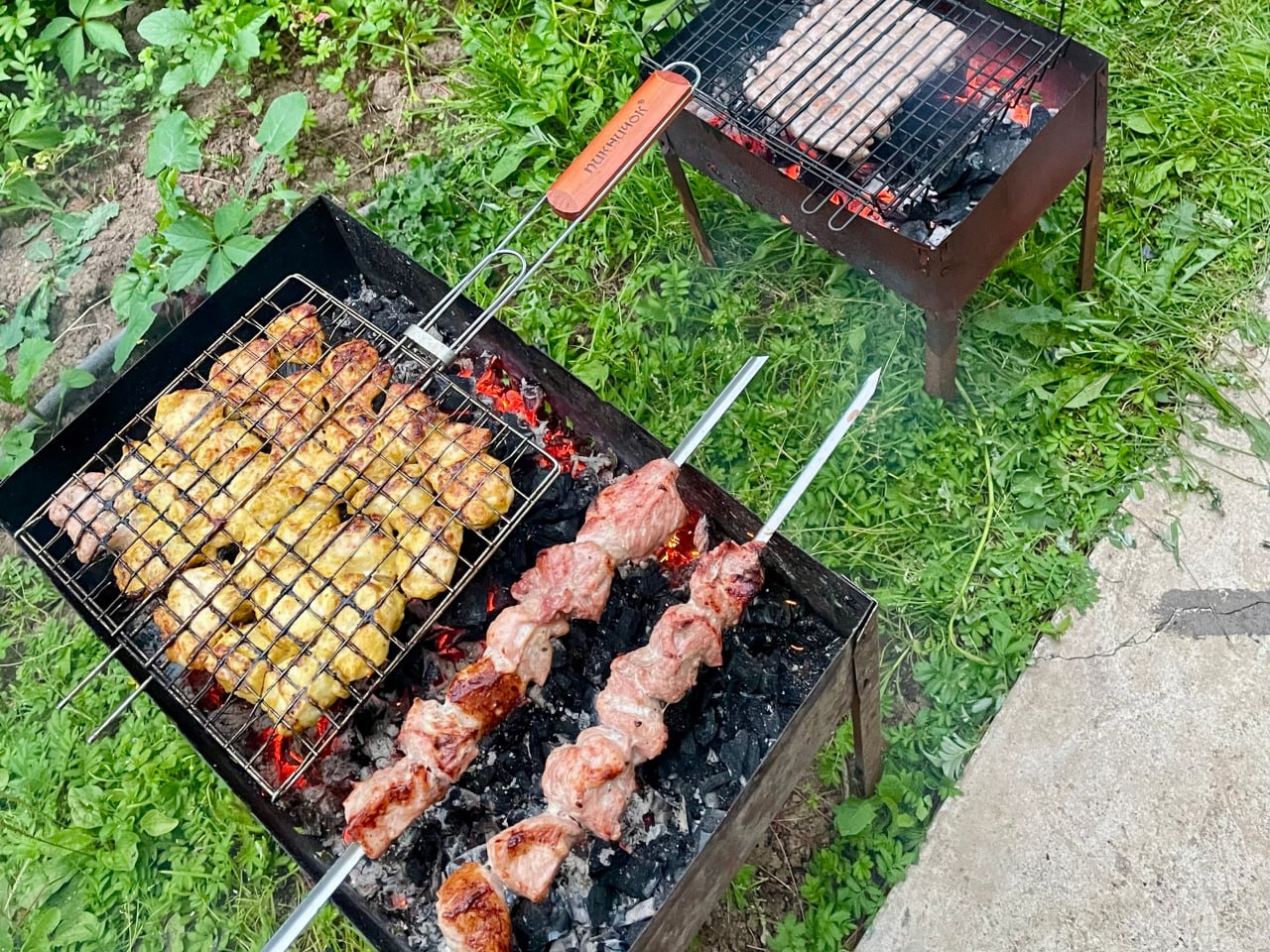 В целом для шашлыка чаще всего выбирают курицу (78%), на 2 месте — свинина (74%), на 3 — колбаски и купаты (45%).