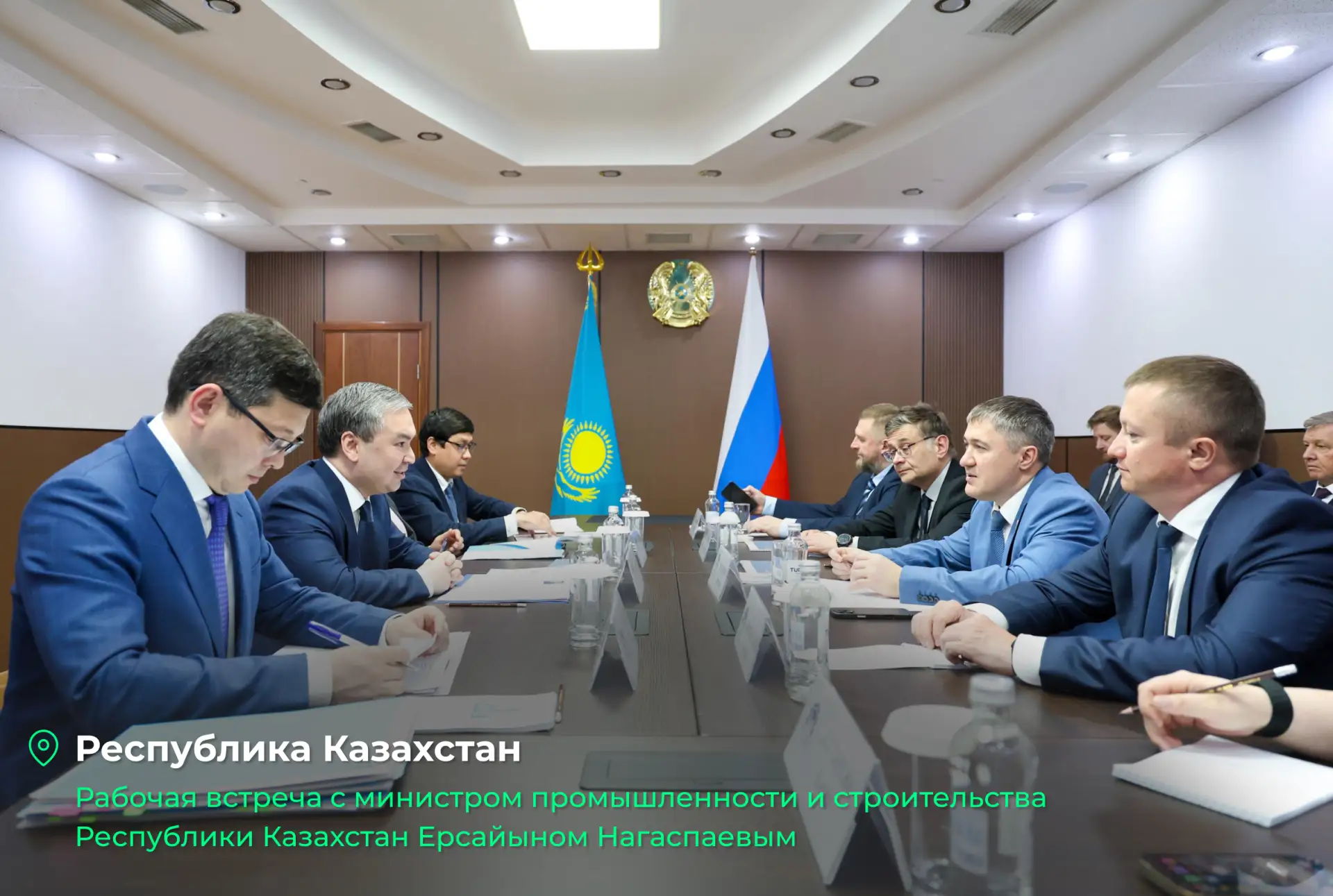 Провели переговоры с министром промышленности и строительства Республики Казахстан Ерсайыном Нагаспаевым. Обсудили, как наши предприятия могут работать вместе, запускать новые проекты и расширять торговые связи.