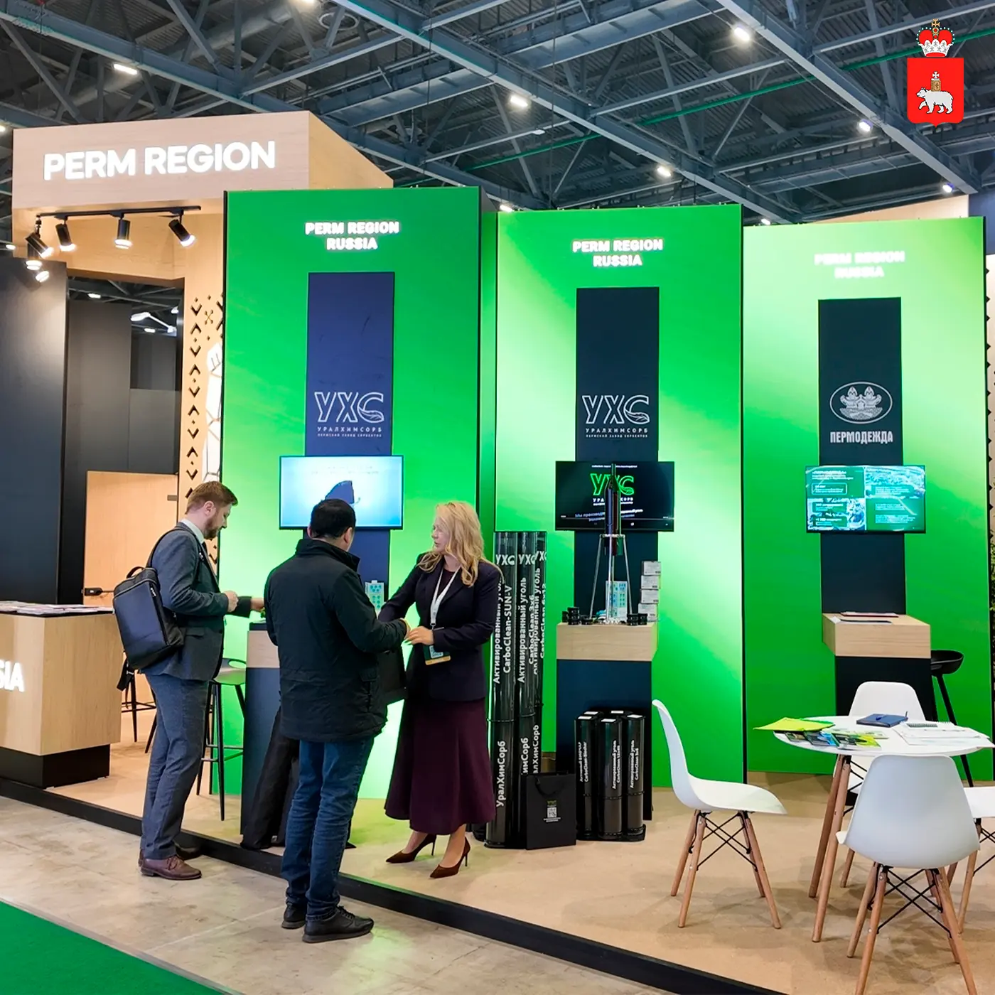 Пермские предприятия и организации — Пермский НОЦ, «УралХимСорб», «Пермодежда», «Кредо-пласт», Уральский завод противогололедных материалов и другие — представили экологические решения для очистки воды и почв, промышленности и городской среды.