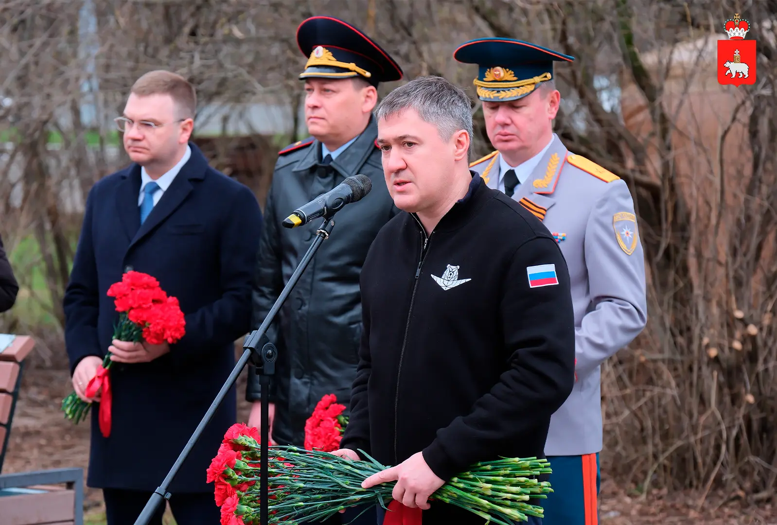 Губернатор Дмитрий Махонин возложил цветы к мемориалу, посвященному подвигу ликвидаторов.