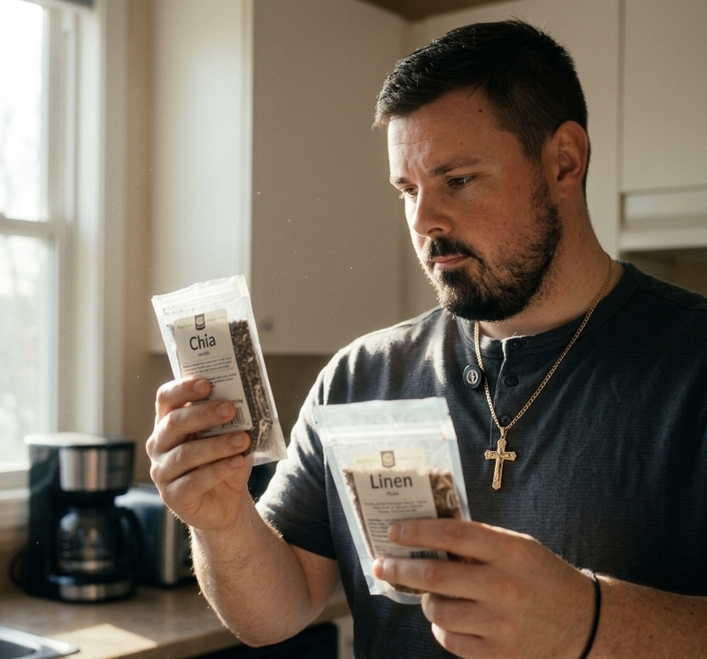 - Клетчатка: чиа содержит 34 г на 100 г, лен – 27 г. Разница не столь значительна.
