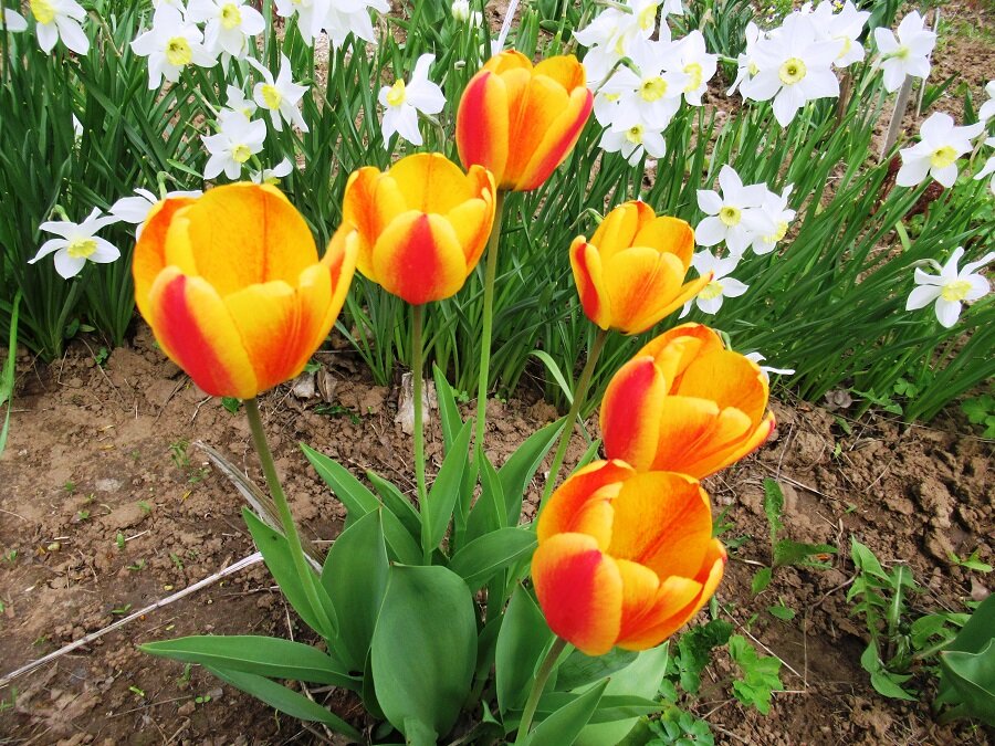 Цветение тюльпанов и нарциссов в значительной степени зависит от ухода. В одном из годов, когда у родителей маленькие дети требовали много внимания, цветы практически не получали ухода. В результате тюльпаны оказались с короткими «ножками», что стало следствием недостатка прополки.