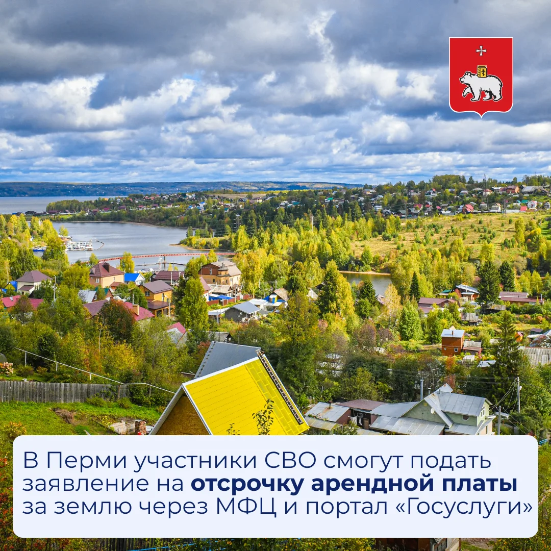 В Перми участники СВО смогут подать заявление на отсрочку арендной платы за землю через МФЦ и портал «Госуслуги»